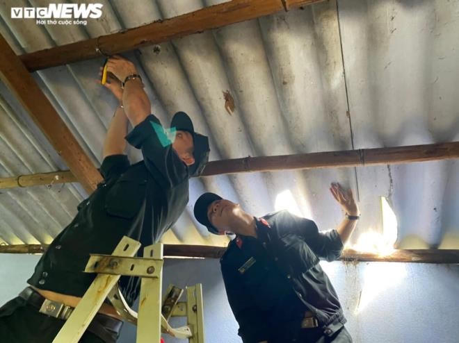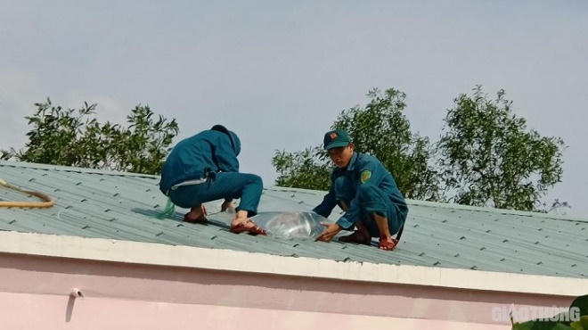 Người dân sử dụng túi nilon chứa nước gia cố mái tôn