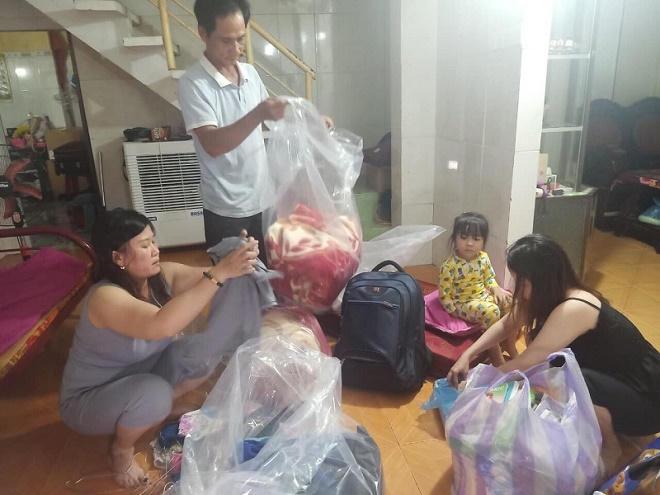 Một gia đình chuẩn bị vật dụng "chạy" bão.