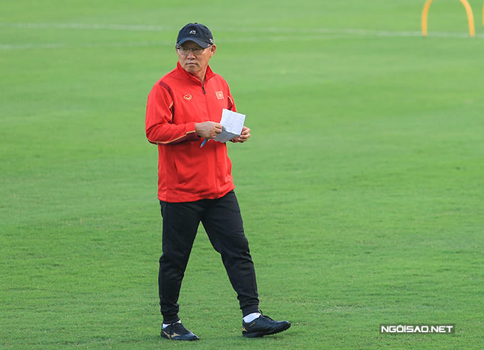 HLV Park trên sân tập của tuyển Việt Nam chiều 6/12. Ảnh:Đương Phạm. |
