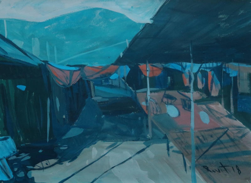 Tôi thích màu lam trong tranh của anh. Màu lam được Lương Văn Tiến sử dụng trong hầu hết các bức tranh bột màu của mình, như một lá bùa. Lá bùa ấy mang lại cho tranh Tiến sự thâm trầm. Lá bùa đó mang lại sự bí ẩn, thinh lặng, và cả sự tinh tế. Người họa sĩ đã tận dụng hết những thế mạnh của bột màu, để chất liệu này như được khởi sắc, trở nên xốp nhẹ, trong trẻo và cũng rất đỗi khỏe khoắn, ấn tượng. Dưới ngòi bút của Lương Văn Tiến, bột màu như được cất cánh.