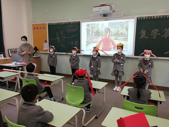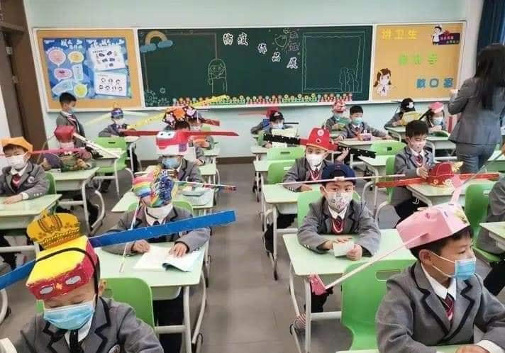 Học sinh Trung Quốc đội mũ 'giãn cách' sau khi quay trở lại trường học
