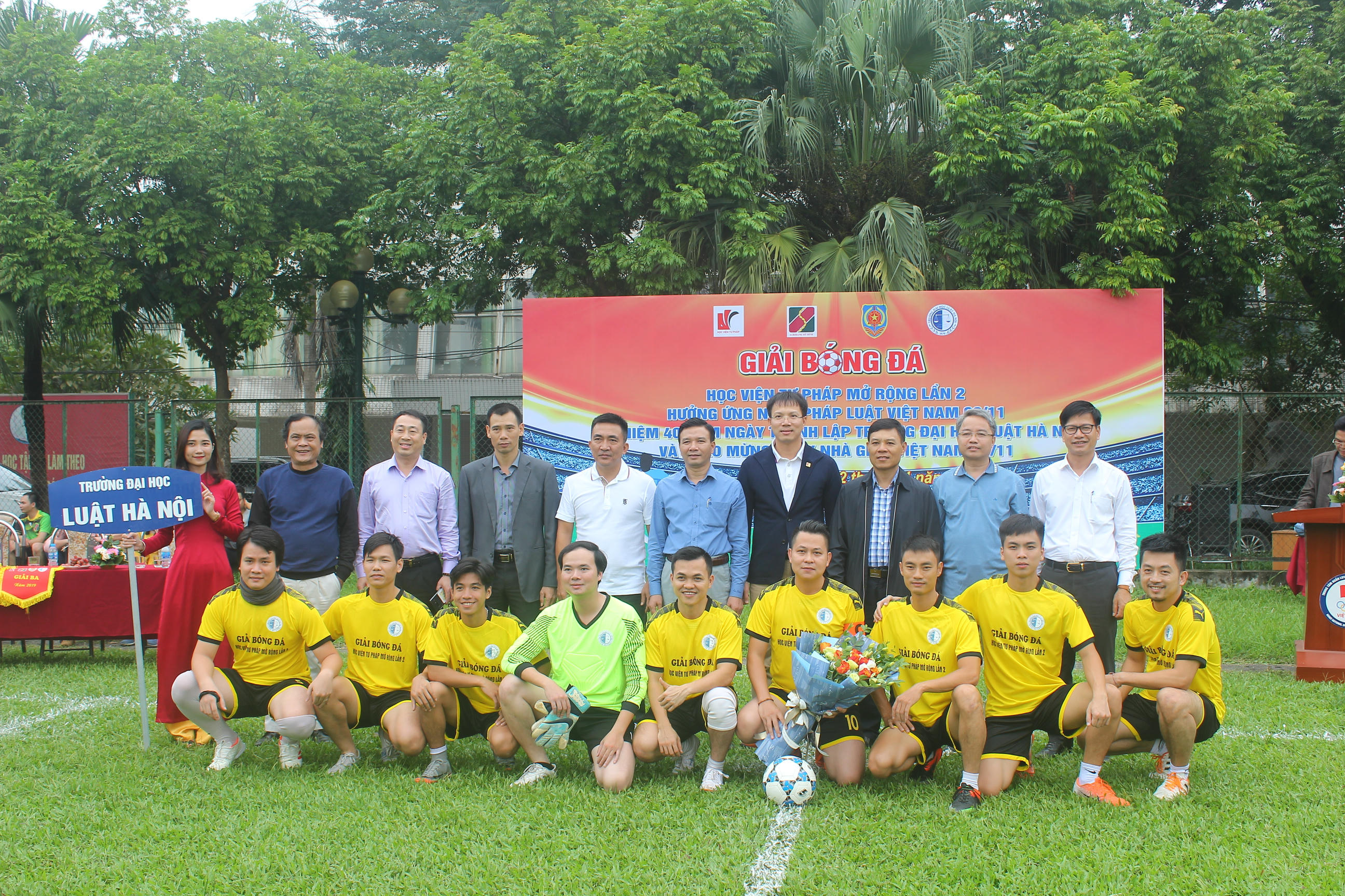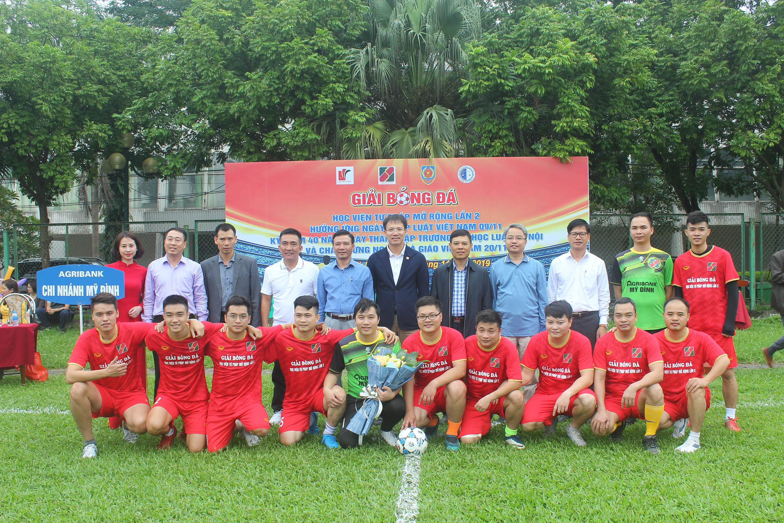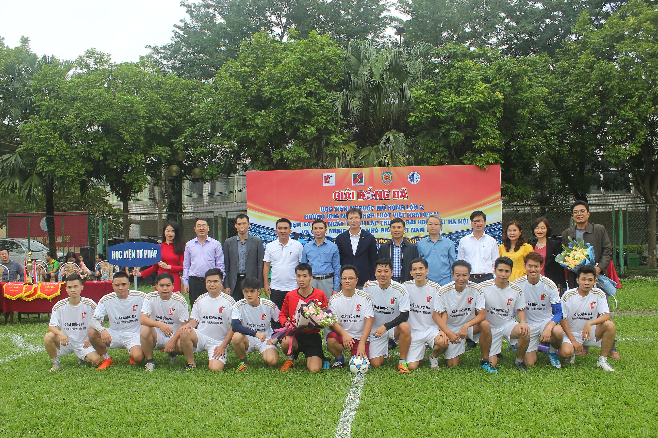 (PLVN) -Hưởng ứng Ngày Pháp luật Việt Nam 9/11 và chào mừng Ngày Nhà giáo Việt Nam 20/11, cuối tuần qua, Học viện Tư pháp đã phối hợp với đơn vị tài trợ tổ chức “Giải bóng đá giao hữu Học viện Tư pháp mở rộng lần 2” với 4 đội bóng đến từ 4 cơ quan, đơn vị: Trường ĐH Luật Hà Nội, Đoàn TNCSHCM Bộ Tư pháp, Học viện Tư pháp và Agribank chi nhánh Mỹ Đình.