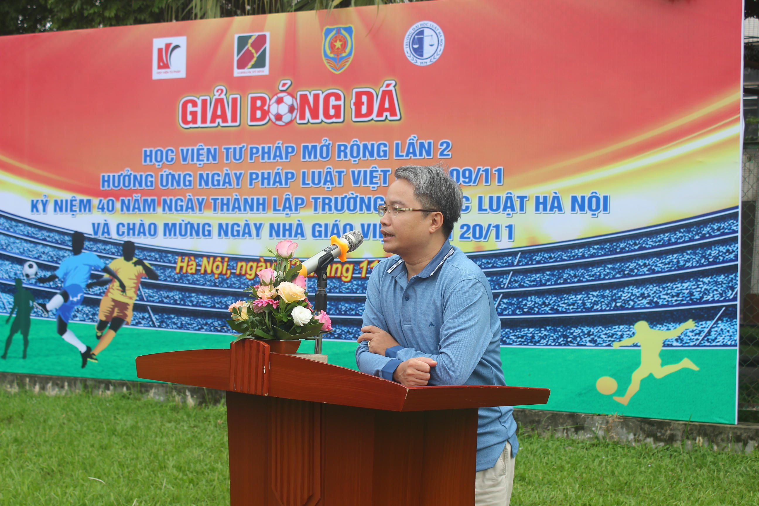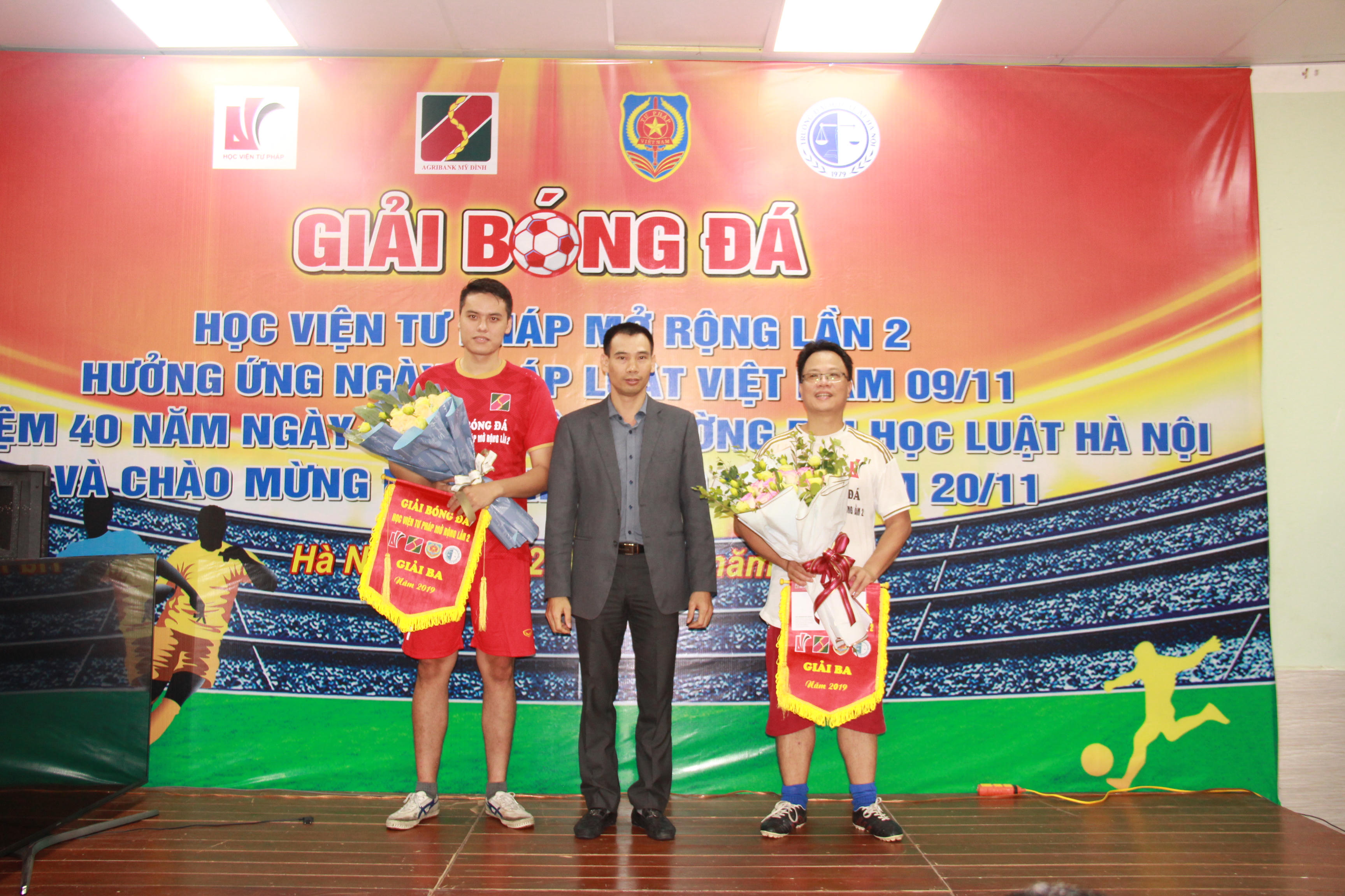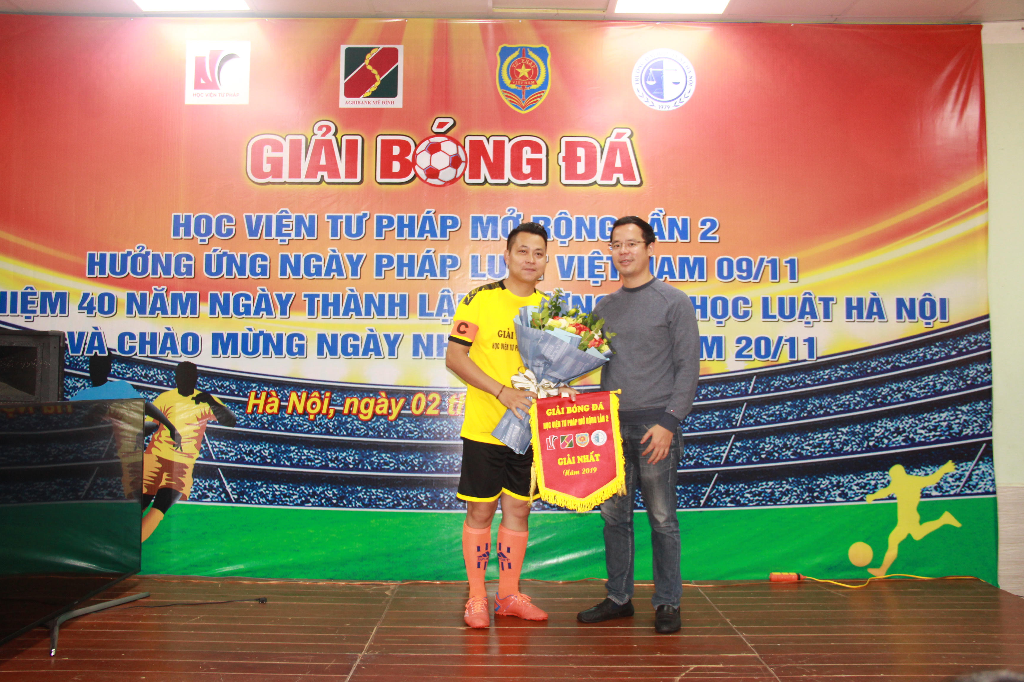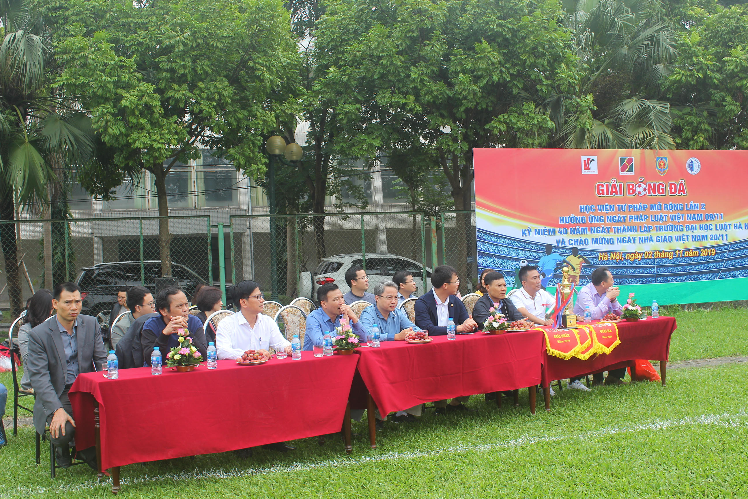 (PLVN) -Hưởng ứng Ngày Pháp luật Việt Nam 9/11 và chào mừng Ngày Nhà giáo Việt Nam 20/11, cuối tuần qua, Học viện Tư pháp đã phối hợp với đơn vị tài trợ tổ chức “Giải bóng đá giao hữu Học viện Tư pháp mở rộng lần 2” với 4 đội bóng đến từ 4 cơ quan, đơn vị: Trường ĐH Luật Hà Nội, Đoàn TNCSHCM Bộ Tư pháp, Học viện Tư pháp và Agribank chi nhánh Mỹ Đình.