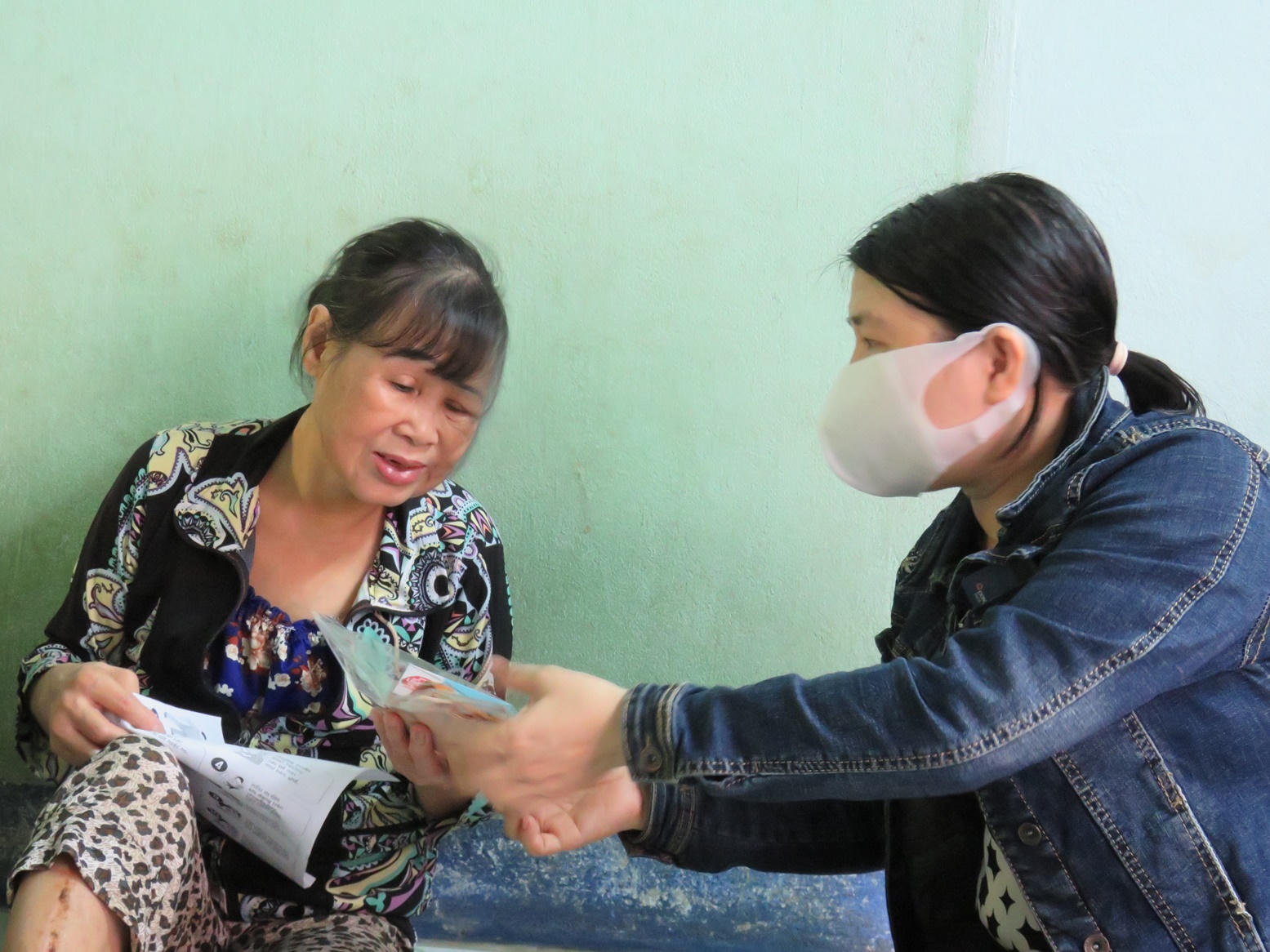 Bà Nguyễn Thị Hồng Loan (61 tuổi, ngụ phường Nhơn Bình) từ nhỏ thị lực kém, hiện một mắt hoàn toàn không nhìn thấy gì, mắt còn lại rất yếu và mang căn bệnh tiểu đường biến chứng nhiều năm nay. Càng ngặt nghèo hơn khi 2 tháng trước bà bị xe đụng gãy chân, hiện chưa thể đi lại được. Mắt mờ đục chẳng thể xem báo, tờ rơi tuyên truyền về phòng dịch nên bà càng siêng nghe tivi, đài truyền thanh để biết cách tự bảo vệ mình.
