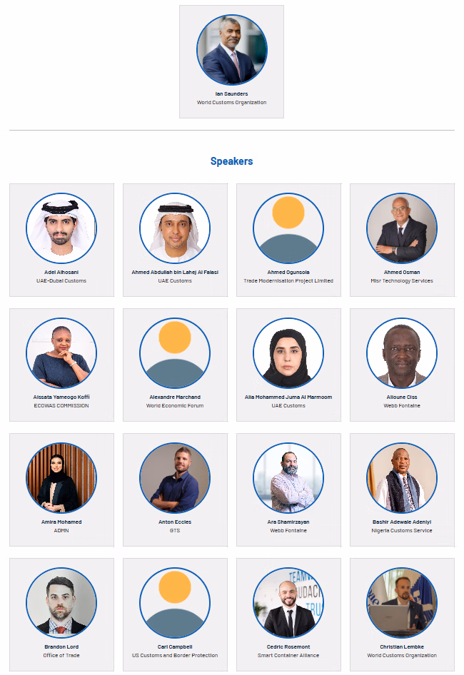 Hội nghị Công nghệ và Triển lãm năm 2026 quy tụ đội ngũ diễn giả đa dạng và có uy tín cao, bao gồm lãnh đạo cấp cao từ WCO, các cơ quan Hải quan và quản lý biên giới các nước, cùng đại diện chính phủ nước chủ nhà. Nổi bật là sự tham gia của ông Ian Saunders, Tổng Thư ký WCO, cùng lãnh đạo Cơ quan Hải quan các Tiểu vương quốc Ả rập thống nhất (UAE) và lãnh đạo cấp cao cơ quan Hải quan, bảo vệ biên giới từ nhiều nước, các cơ quan, tổ chức khu vực, quốc tế,… cho thấy vai trò trung tâm của cơ quan Hải quan trong quản lý thương mại toàn cầu, bảo đảm an ninh chuỗi cung ứng và thích ứng với bối cảnh kinh tế-công nghệ có nhiều biến động.