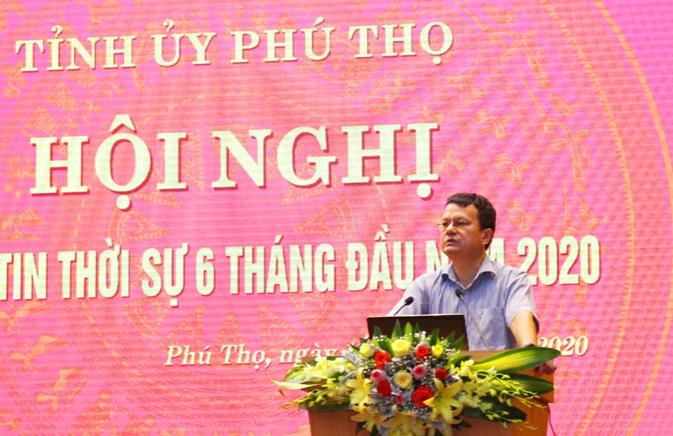 (PLVN) - Ngày 10/6, Ban Thường vụ Tỉnh ủy tỉnh Phú Thọ tổ chức hội nghị thông tin thời sự 6 tháng đầu năm 2020 cho cán bộ, lãnh đạo quản lý các cấp trong tỉnh bằng hình thức trực tuyến từ điểm cầu của tỉnh đến 15 huyện, thành, thị ủy và các Đảng ủy trực thuộc.