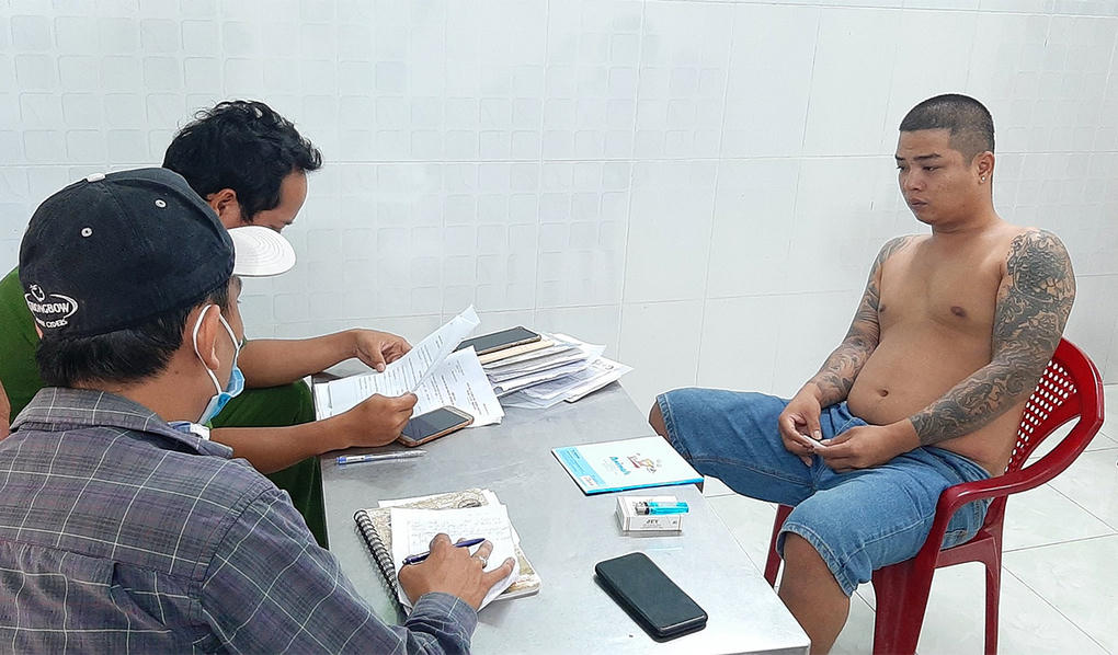 Một trong 12 nghi can trong nhóm cho vay nặng lãi bị bắt. Ảnh: Hồ Nam/VNE
