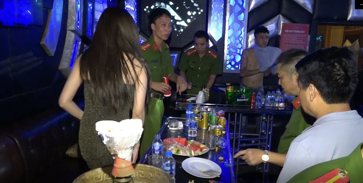 Tại đây, công an phát hiện 114 người tại 9 phòng hát của hai quán đang bay lắc theo tiếng nhạc. Trong đó có 90 người tại 7 phòng hát của quán bar Rube One, 24 người tại 2 phòng hát của quán Karaoke Ruby KTV.