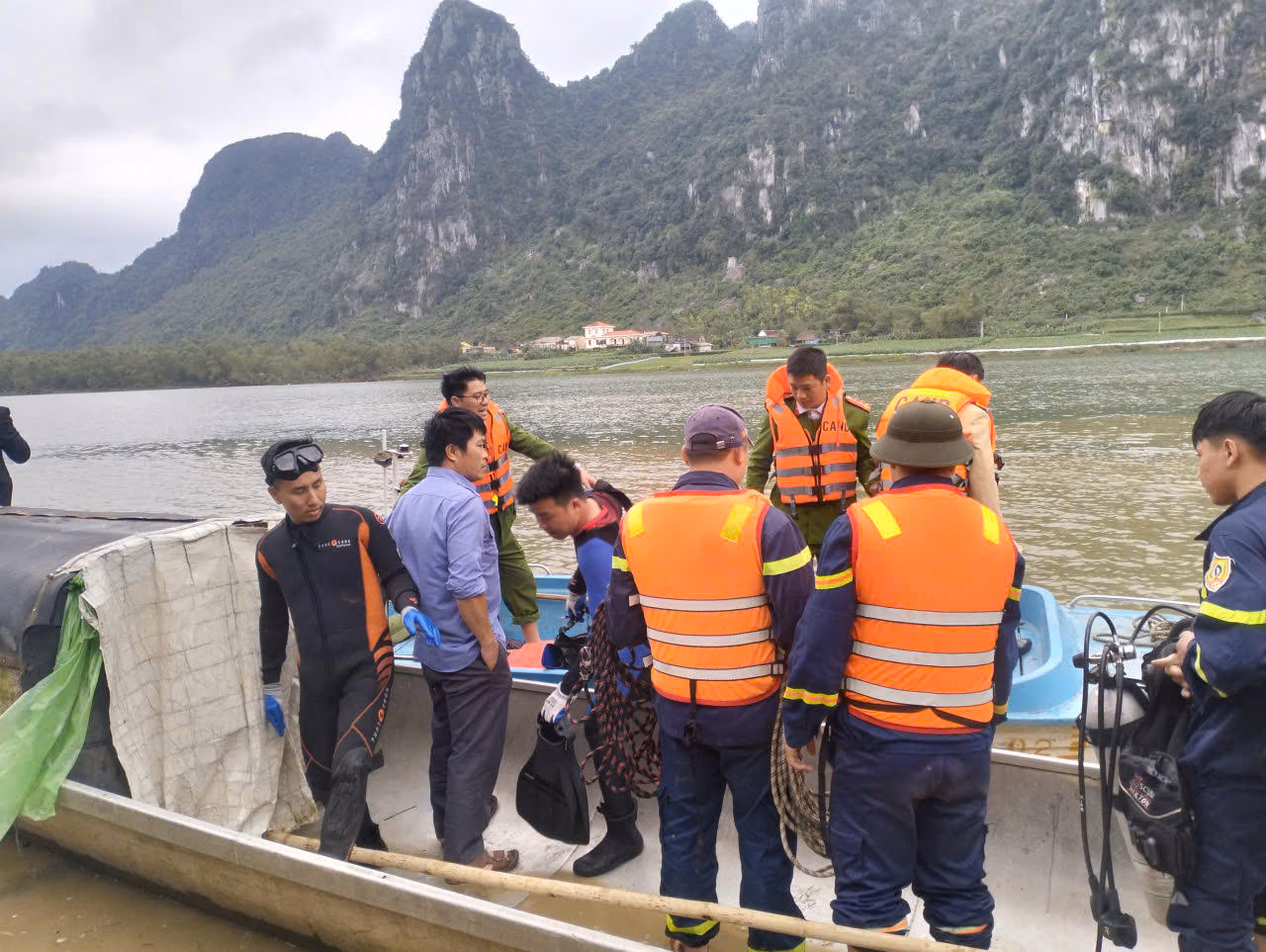 Các lực lượng chức năng đã khoanh vùng khu vực xảy ra tai nạn, tổ chức tìm kiếm trên mặt nước và dưới lòng sông; đồng thời sử dụng thiết bị dò tìm chuyên dụng, móc câu và huy động thợ lặn để mở rộng phạm vi tìm kiếm dọc hai bên bờ sông.