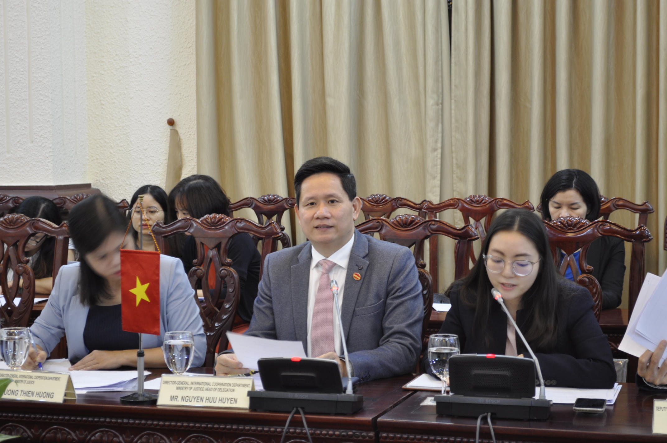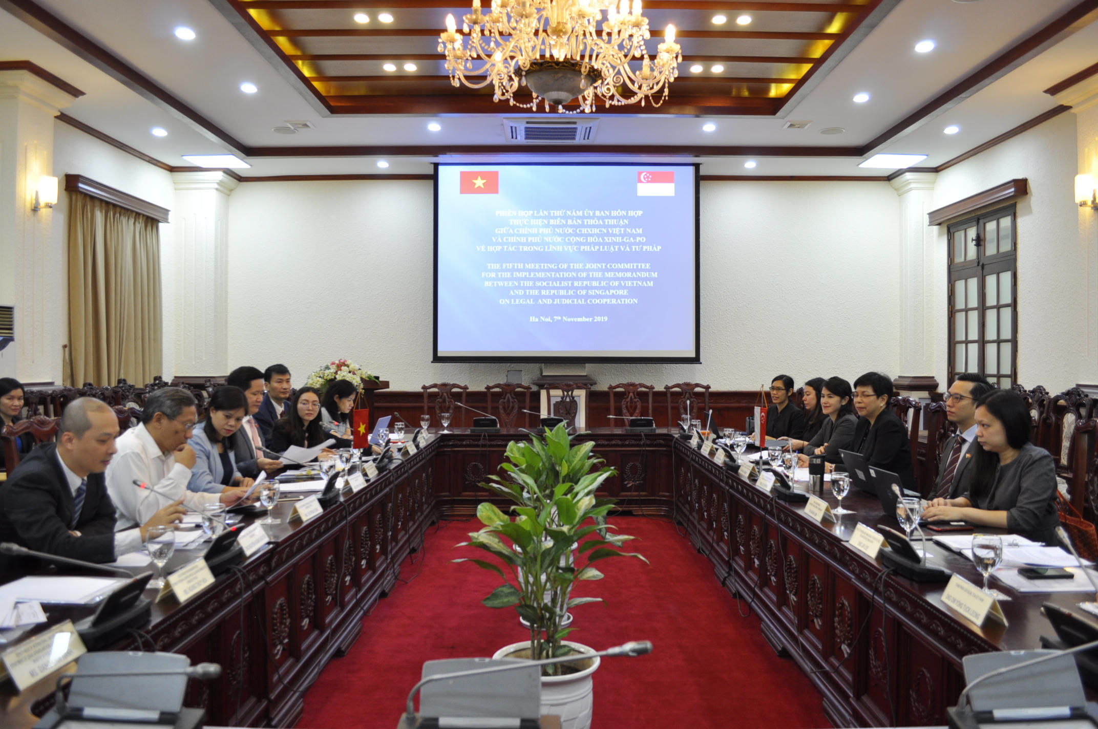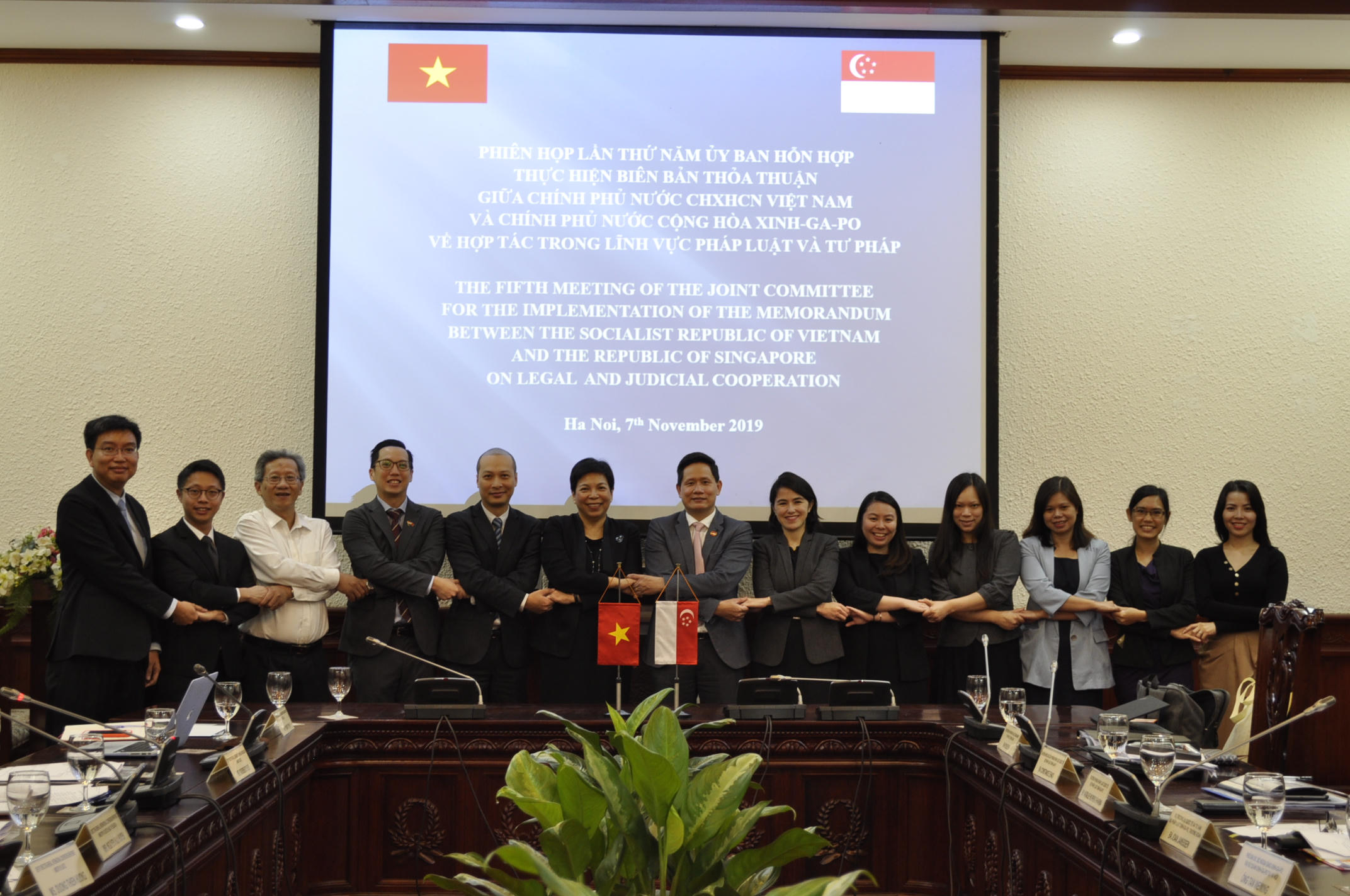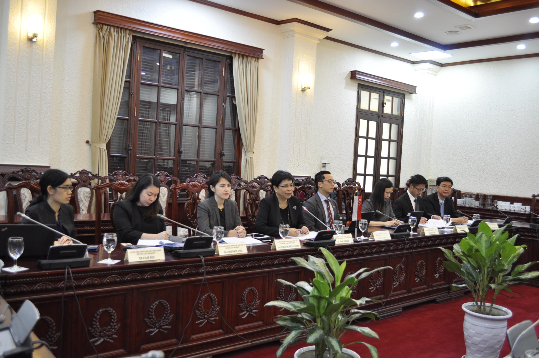 Vụ trưởng Vụ Hợp tác quốc tế (Bộ Tư pháp Việt Nam) Nguyễn Hữu Huyên và Vụ trưởng Vụ Quốc tế và tư vấn (Bộ Tư pháp Singapore) Joan Janseen đồng chủ trì Phiên họp với sự tham dự của đại diện một số cơ quan liên quan của Singapore. Về phía Việt Nam, có đại diện một số cơ quan như Bộ Ngoại giao, Bộ Công an, Viện KSNDTC, TANDTC...