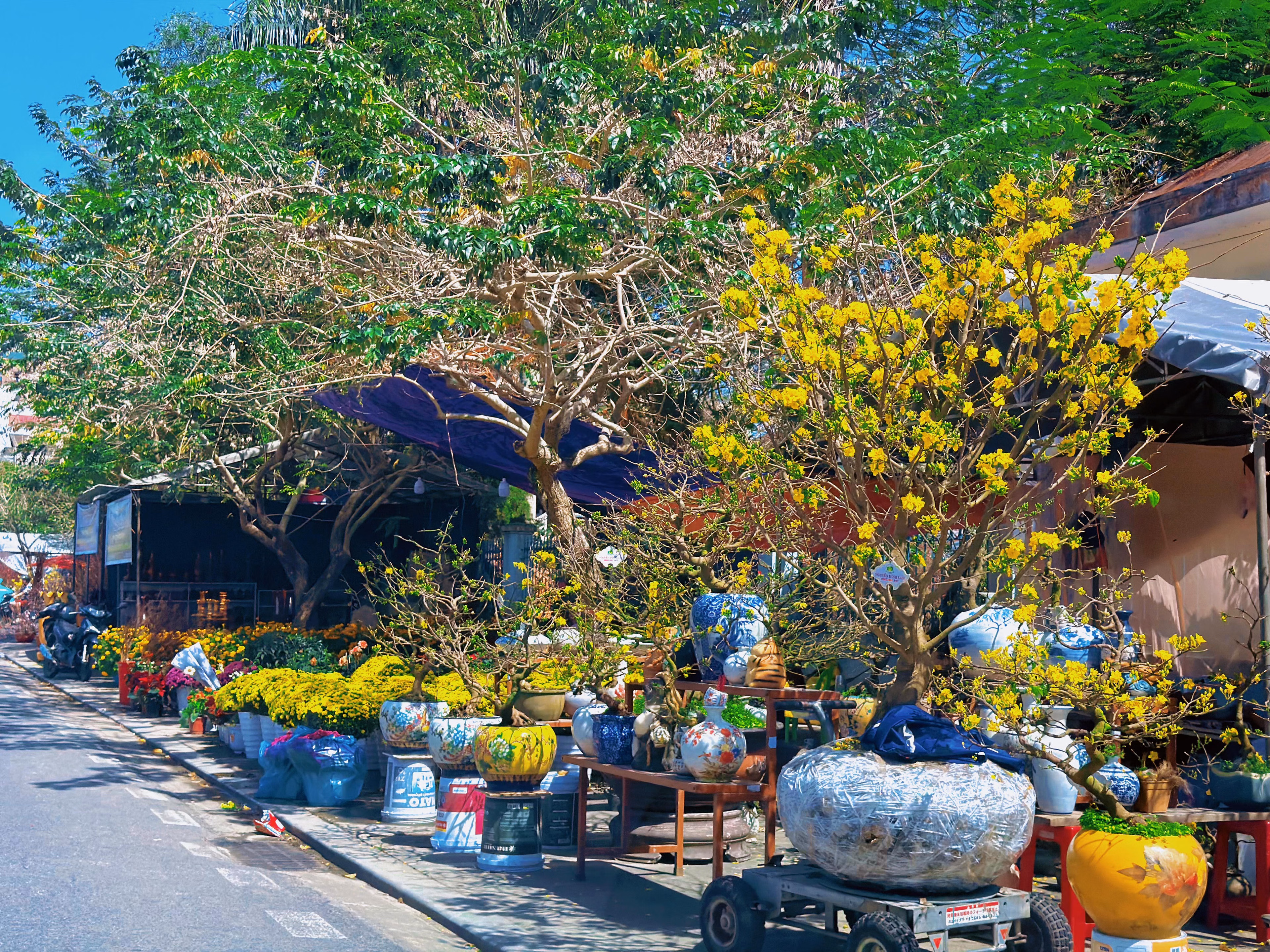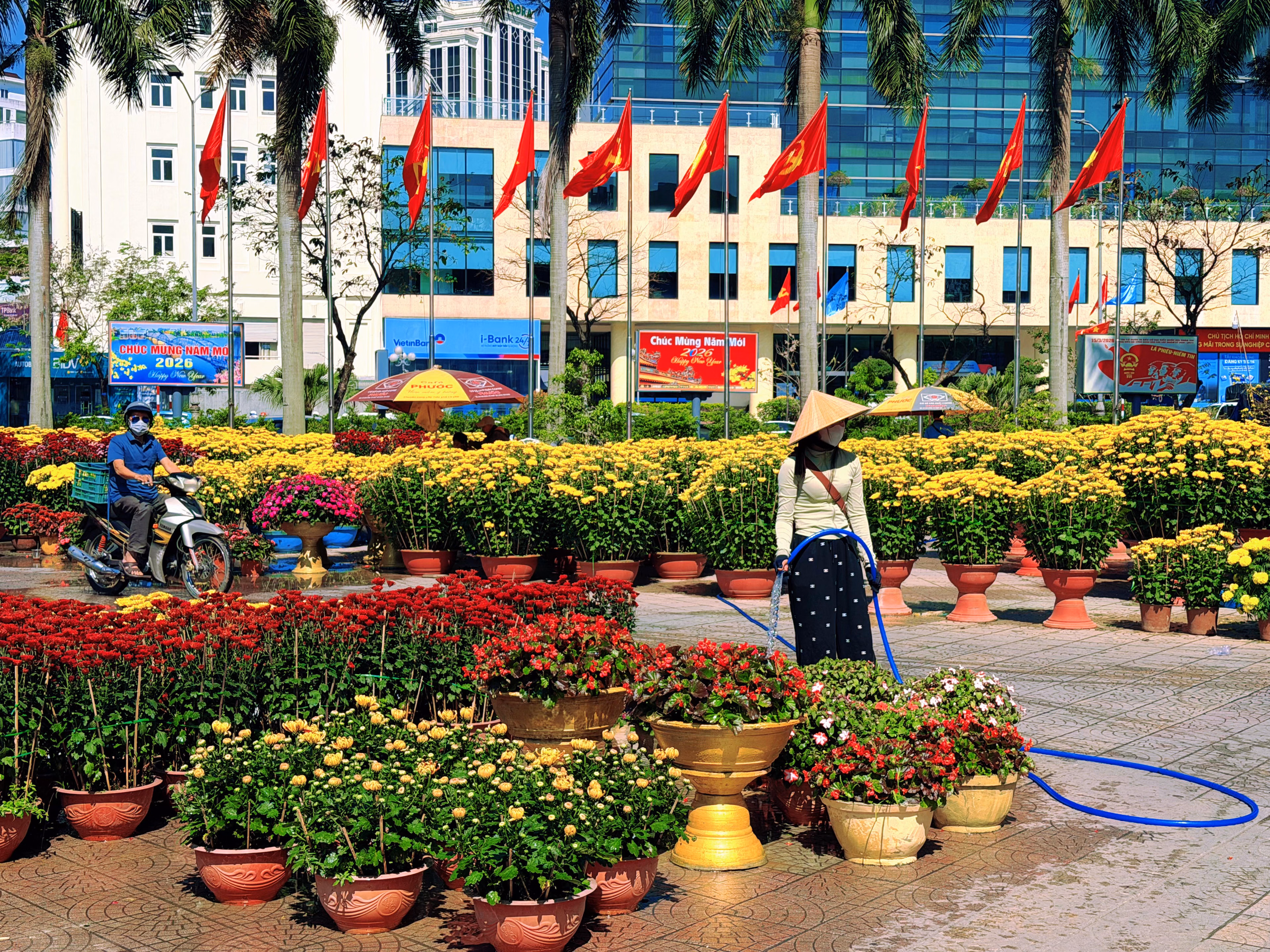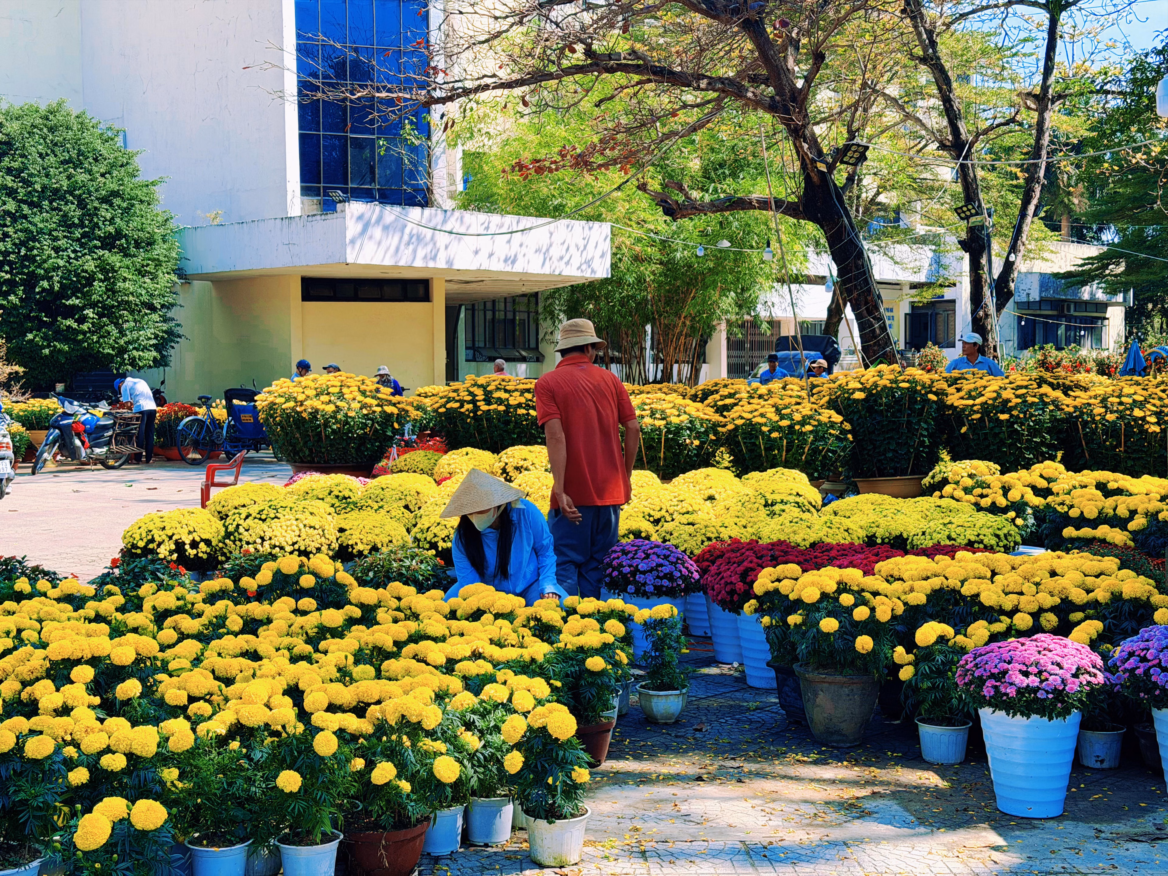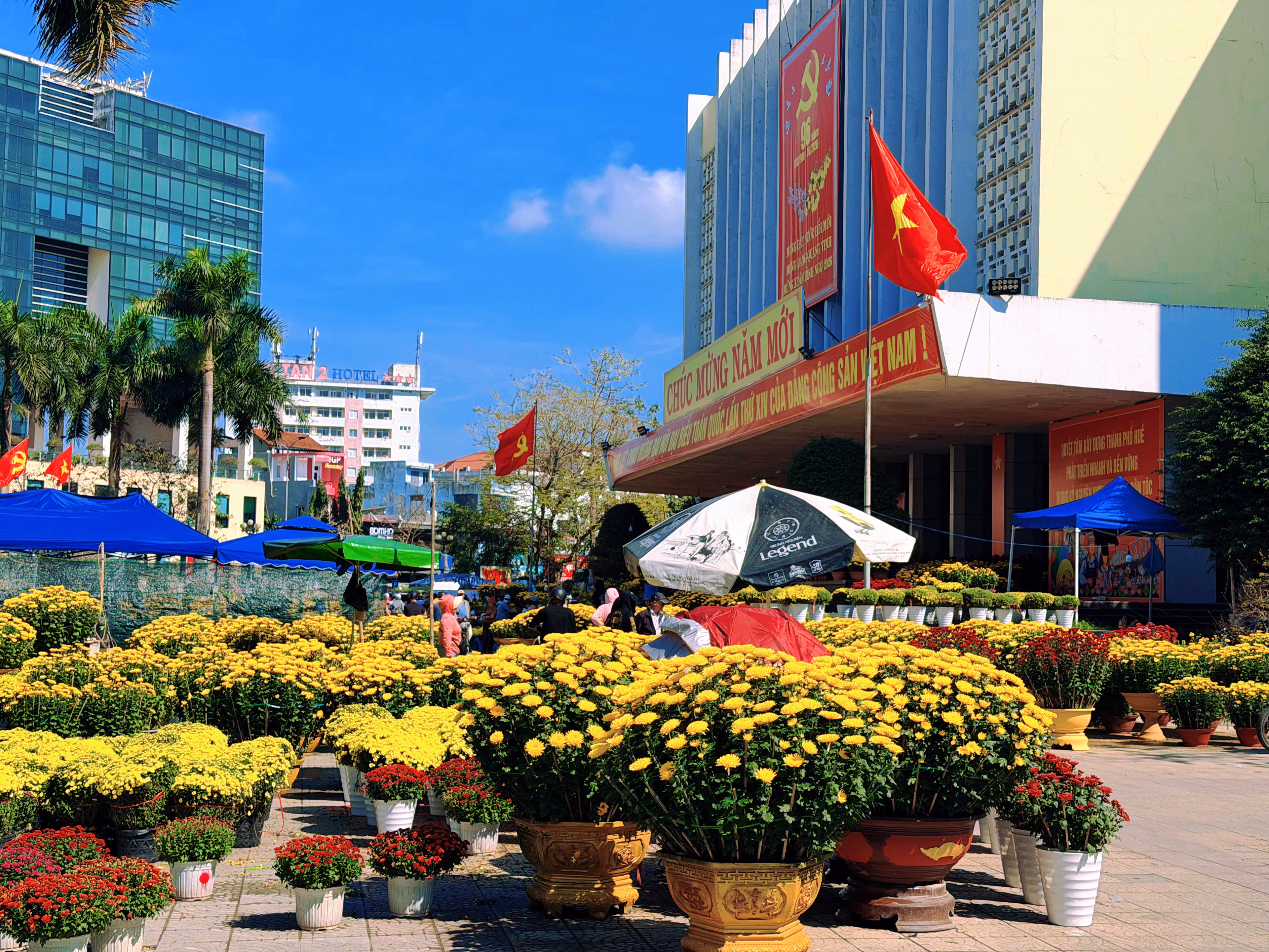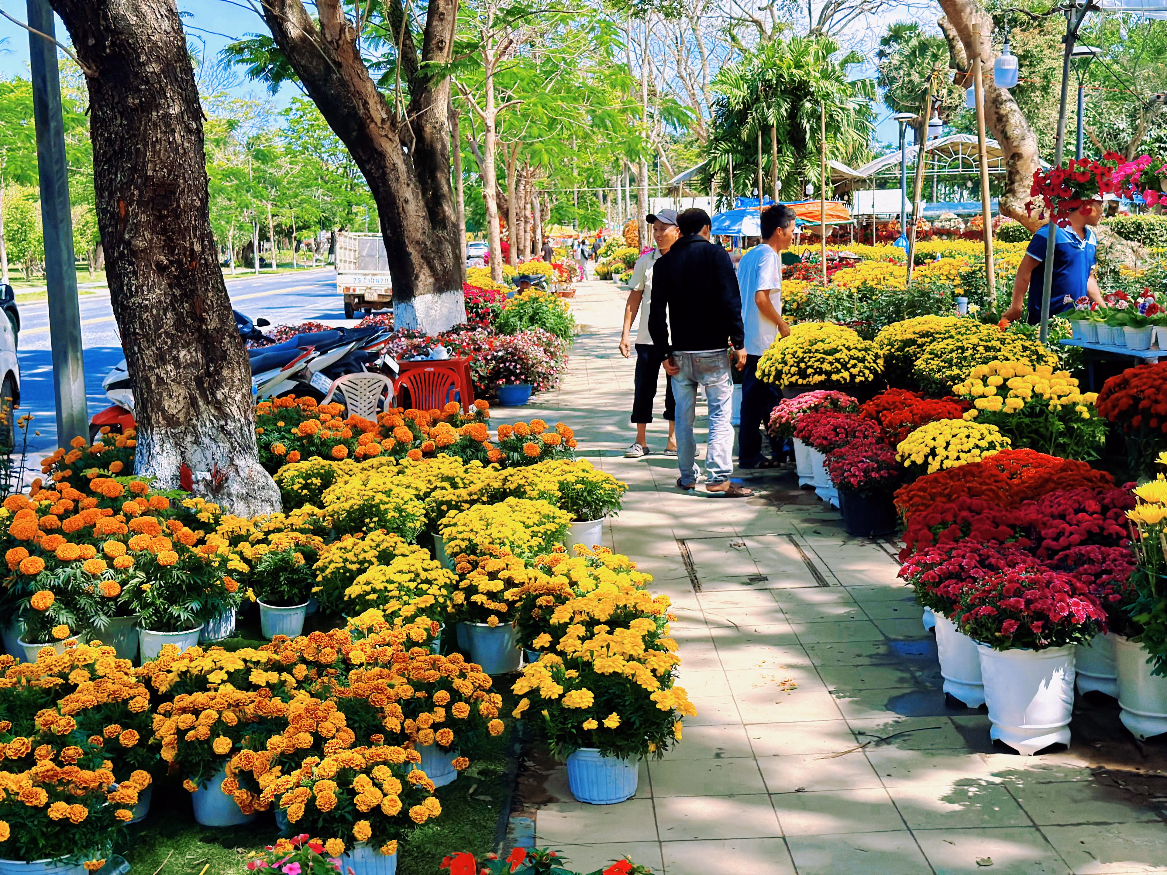 Ngoài các chợ hoa tập trung, tại nhiều khu vực trung tâm thành phố như Trung tâm Văn hóa – Điện ảnh, vỉa hè đường Lê Quý Đôn, Tôn Đức Thắng cũng được bố trí để các hộ kinh doanh trưng bày hoa Tết, góp phần đưa sắc xuân lan tỏa khắp phố phường.