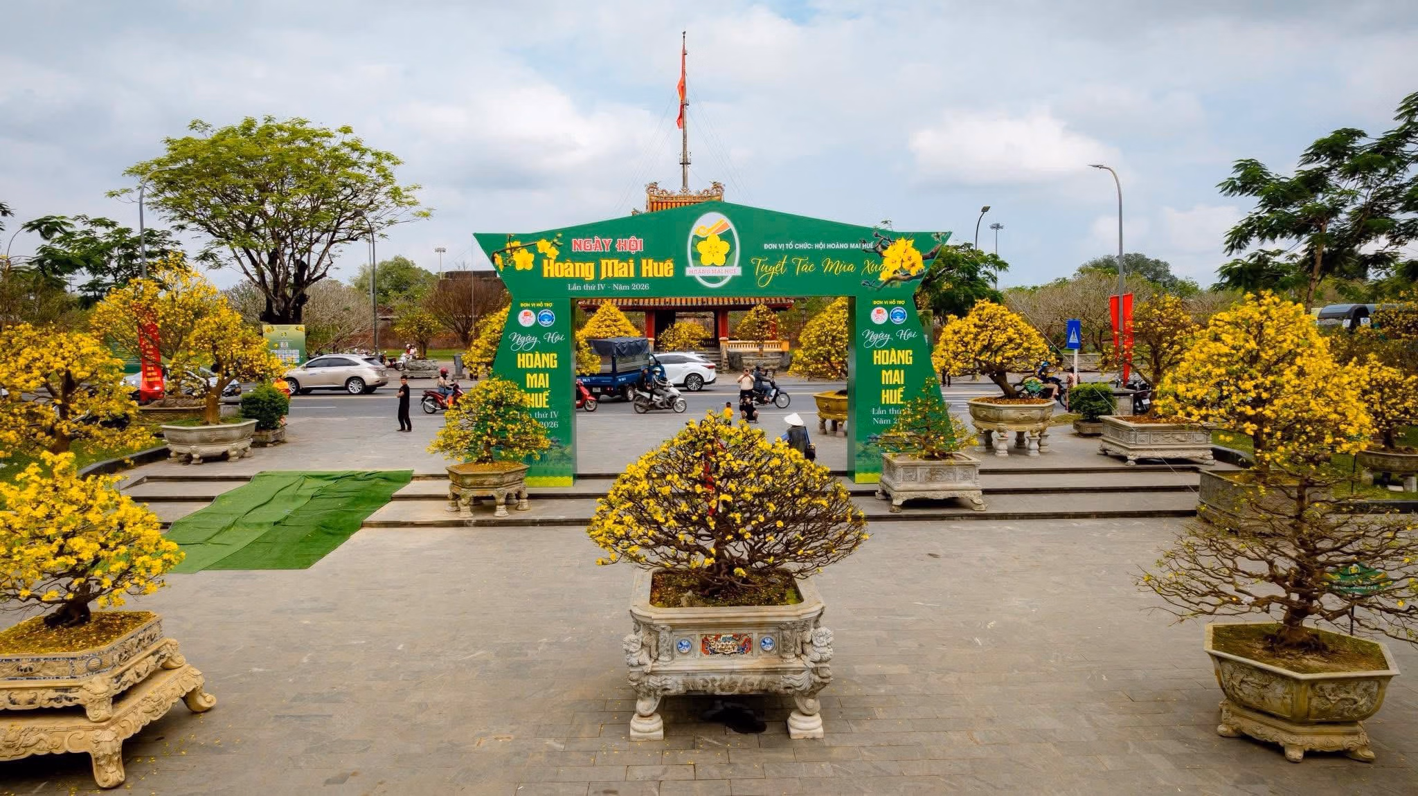 Song song với không khí chợ Tết, chuỗi hoạt động lễ hội mùa xuân của thành phố diễn ra trong 10 ngày tại không gian Nghênh Lương Đình – Phu Văn Lâu, giới thiệu gần 500 tác phẩm Hoàng mai Huế, từ mai cổ thụ, mai đại đến bonsai nghệ thuật.