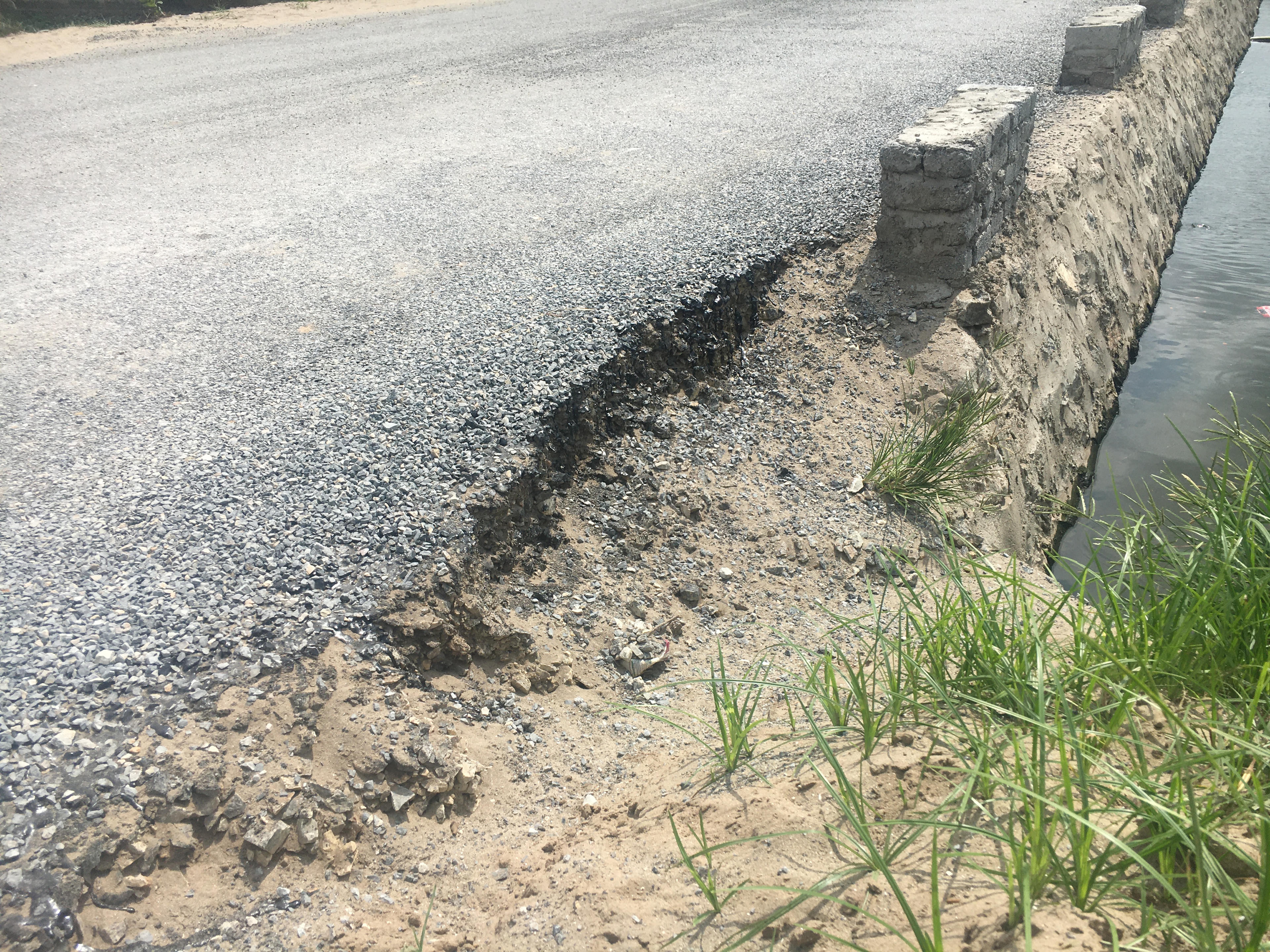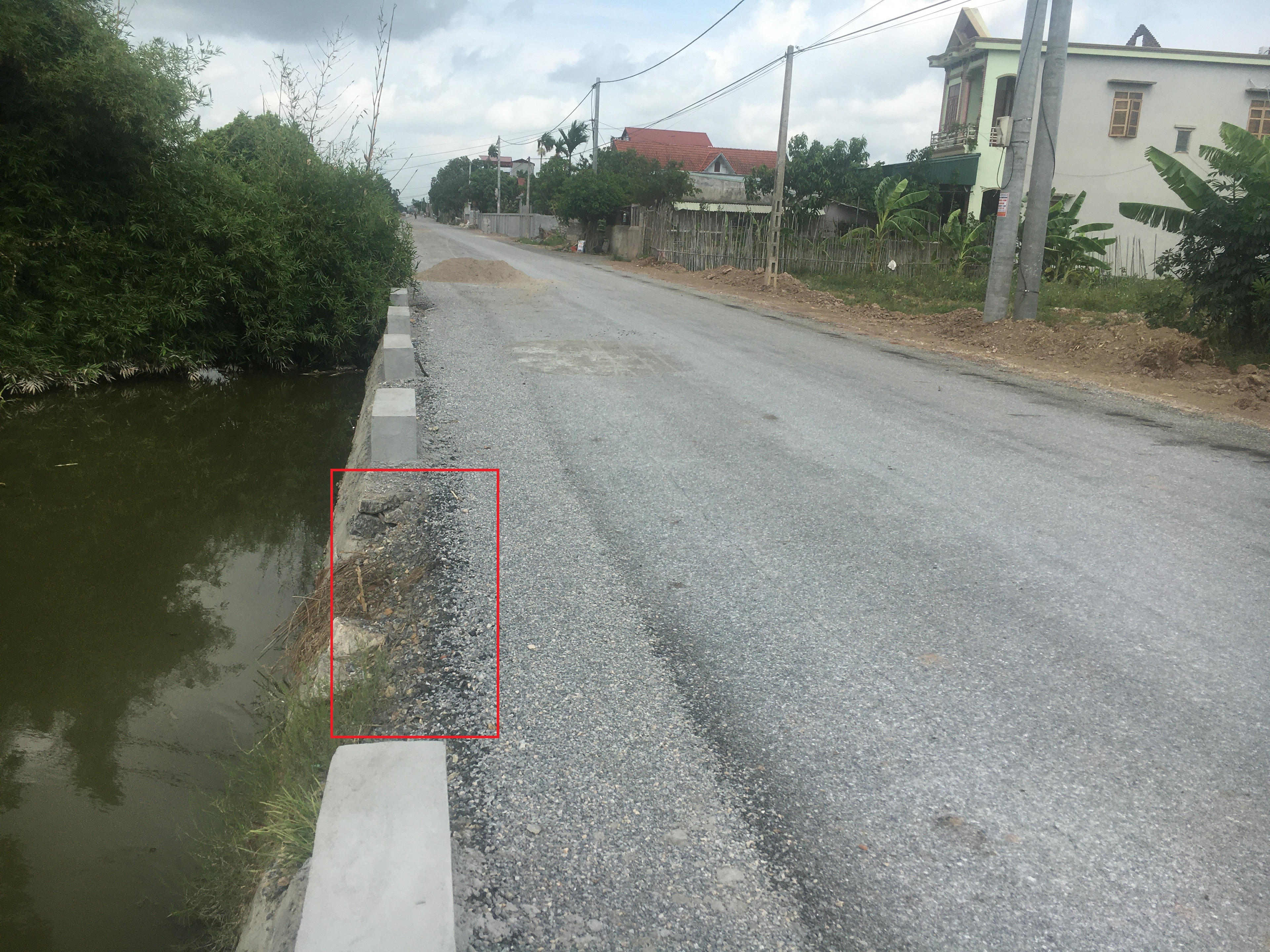 Có mặt thực tế để ghi nhận sự việc tại thôn Ngọc Trúc, phóng viên ghi nhận dọc theo bờ kênh tưới tiêu là tuyến đường mới làm có chiều dài khoảng hơn 1km, rộng khoảng hơn 5m, trải nhựa đường, một bên lề đường đắp đất, bên sát bờ kênh được kè bằng đá. Chạy dọc theo sát bờ kênh xuất hiện nhiều vết sụt lún, bong tróc, và có nhiều vết khoét ăn sâu vào lề đường.