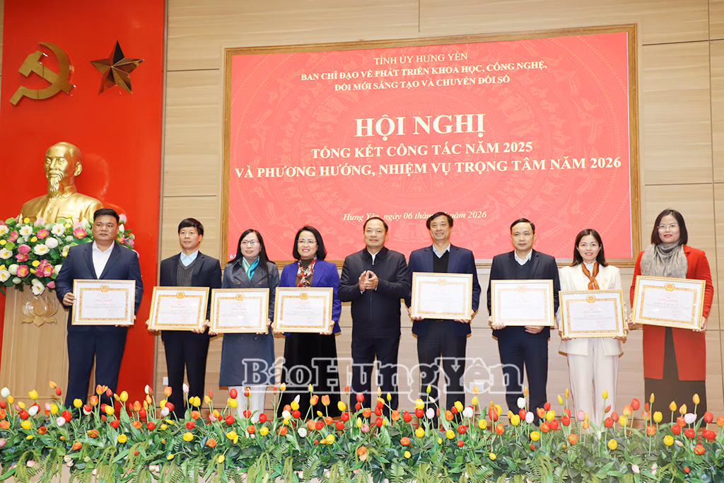 Nhân dịp này, 25 tập thể và 33 cá nhân có thành tích xuất sắc trong thực hiện nhiệm vụ phát triển khoa học, công nghệ, đổi mới sáng tạo và chuyển đổi được nhận Bằng khen. Hội nghị đã công bố, ra mắt và triển khai phần mềm theo dõi, giám sát việc thực hiện các Nghị quyết, Chỉ thị, Kết luận của tỉnh Hưng Yên.