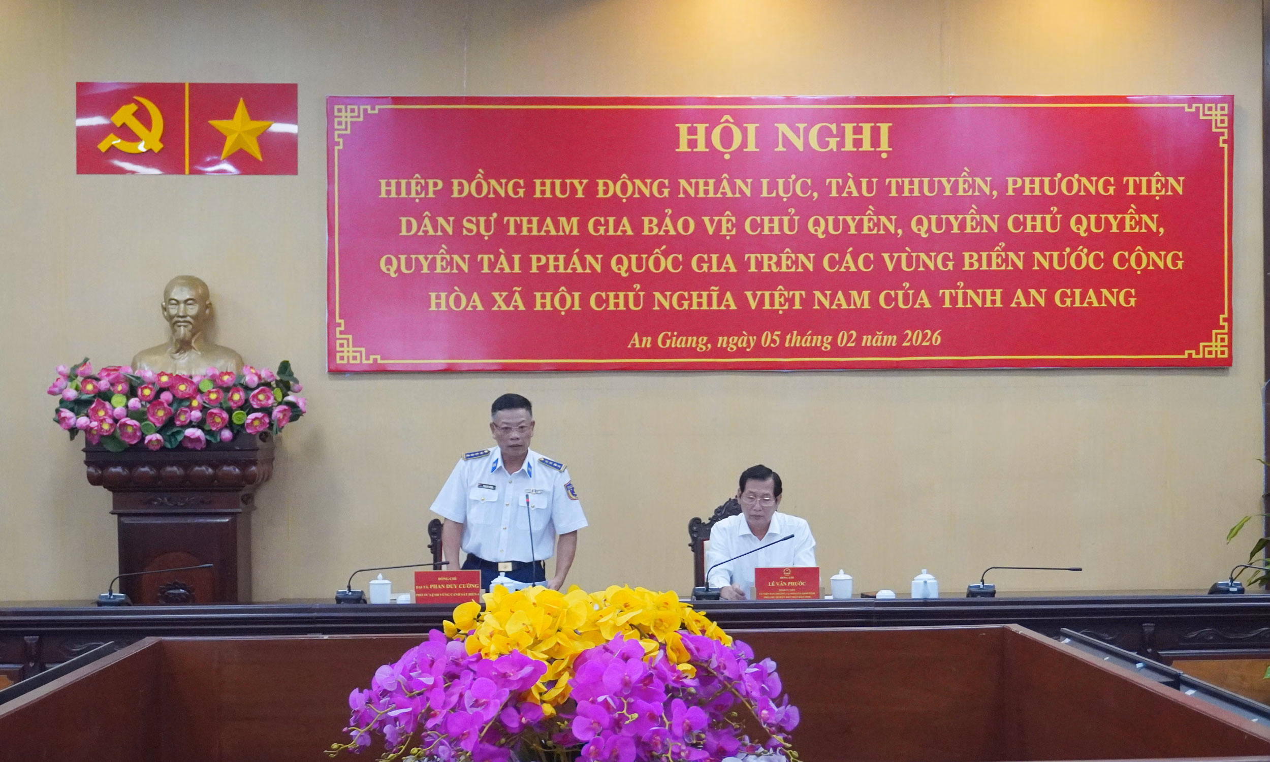 Ngày 5/2, tại An Giang, Bộ Tư lệnh Vùng Cảnh sát biển 4 phối hợp với Ủy ban nhân dân tỉnh An Giang tổ chức Hội nghị hiệp đồng huy động nhân lực, tàu thuyền, phương tiện dân sự tham gia bảo vệ chủ quyền, quyền chủ quyền và quyền tài phán quốc gia trên các vùng biển nước Cộng hòa xã hội chủ nghĩa Việt Nam.