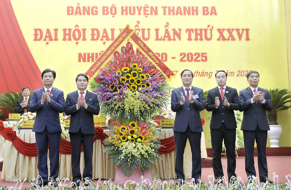 Tại đại hội, thay mặt BCH Đảng bộ tỉnh, Bí thư Tỉnh ủy, Chủ tịch HĐND tỉnh Bùi Minh Châu tặng lẵng hoa chúc mừng, biểu dương những thành tích mà Đảng bộ, chính quyền và nhân dân huyện Thanh Ba đã đạt được trong nhiệm kỳ qua và chỉ đạo một số nhiệm vụ cho Đảng bộ nhiệm kỳ tới.