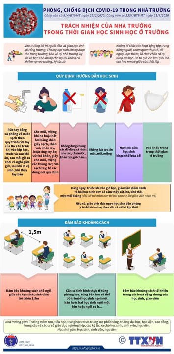 [Infographics]: Các biện pháp đảm bảo an toàn cho học sinh khi quay trở lại trường học