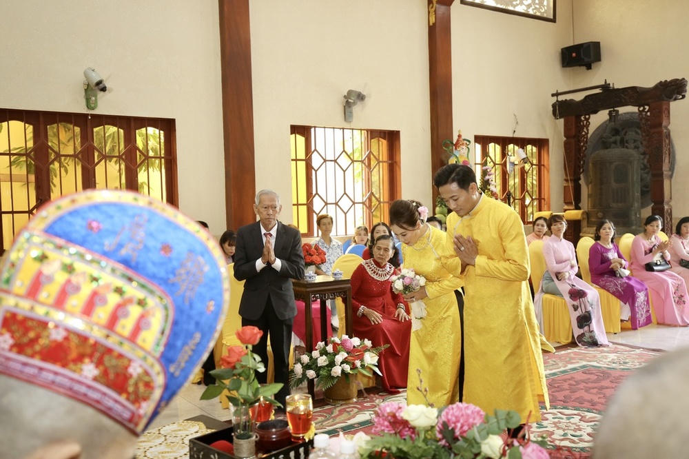 Vợ chồng Quý Bình làm lễ hằng thuận tại chùa