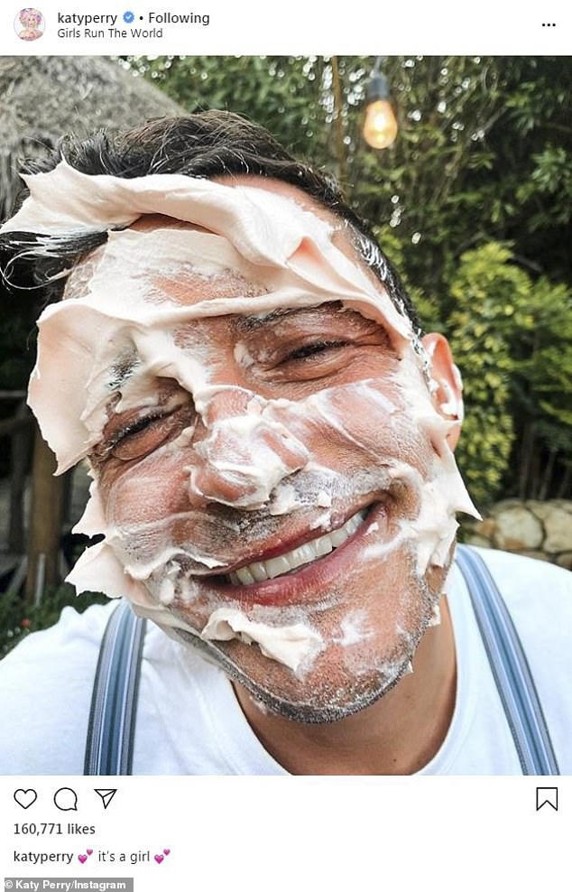 Katy chia sẻ về giới tính của con đầu lòng với một dòng viết: “It’s a girl” (tạm dịch: đó là một bé gái). Kèm theo dòng chia sẻ này là bức ảnh cận mặt của Orlando Bloom với gương mặt được phết đầy kem đang mỉm cười hạnh phúc.