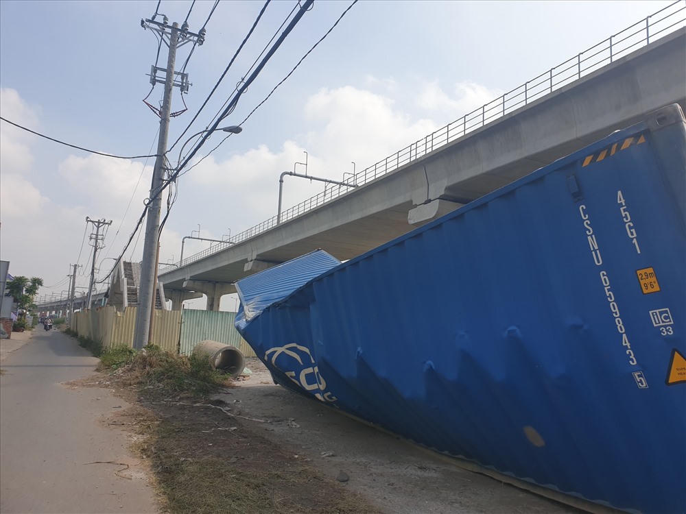 Sự cố khiến một dầm bê tông dài khoảng 20m đổ sập đè lên thùng container và hàng rào chắn của công trình. Vụ việc đã khiến cho thùng container dập nát, gần như "gãy đôi", nằm nghiêng trên rơ-moóc, dầm bê tông hư hỏng nặng.