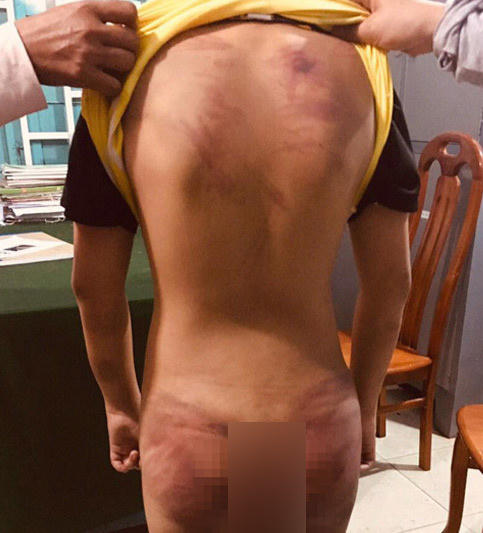 Sáng 17/6, cho rằng bé K. lấy điện thoại của mình xem các hình ảnh nhạy cảm nên bị Đức dùng ống nhựa đánh vào lưng, mông, hai tay gây thương tích. Sau đó, Đức gọi cho bà Hương trả bé K. về nhà. Khoảng 13 gờ 30 phút cùng ngày, bà Hương đến đón con thì nhìn thấy cơ thể con có rất nhiều vết bầm tím nên đến công an xã trình báo.