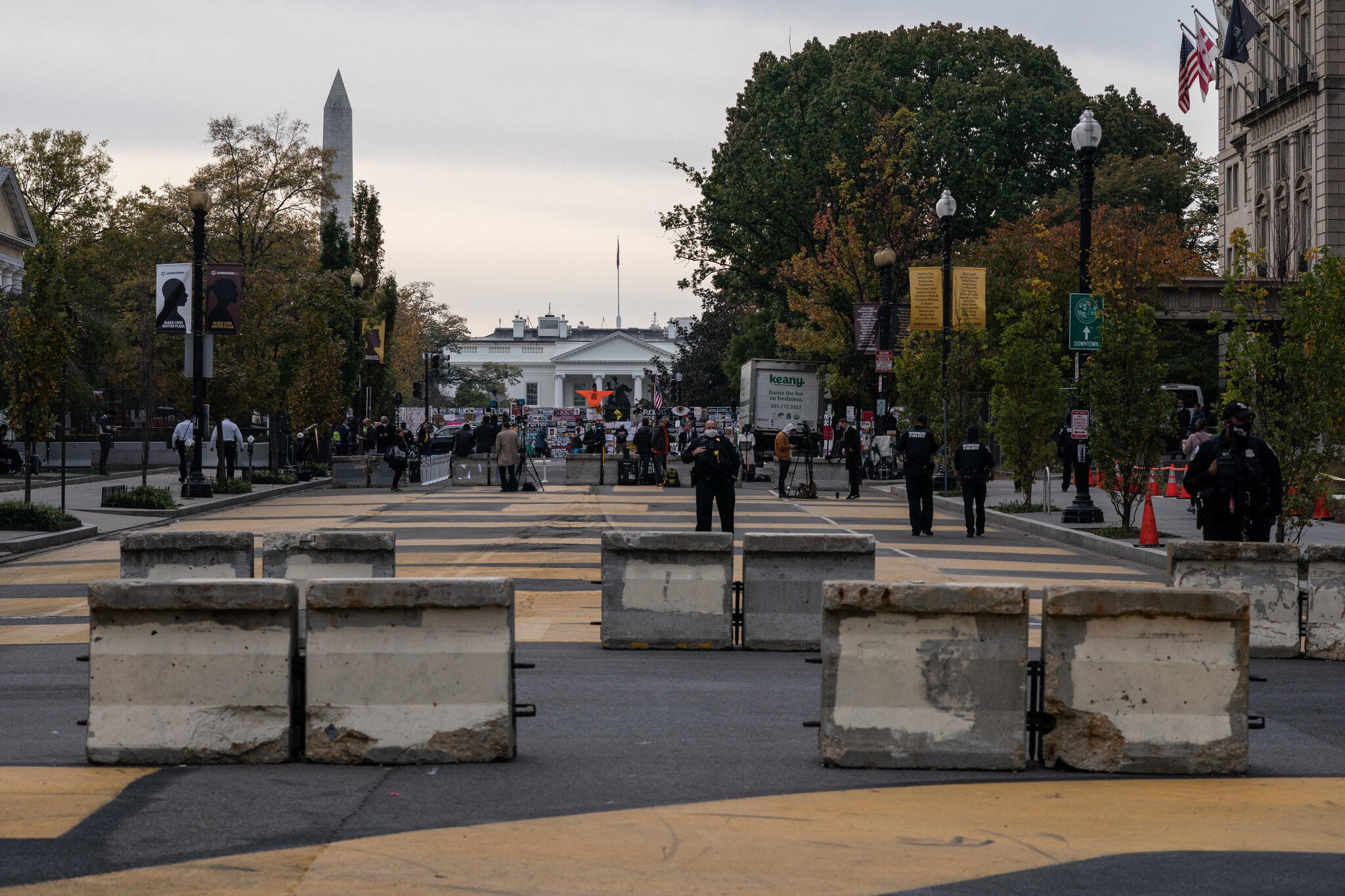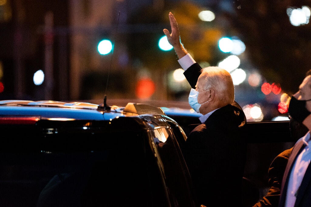 Những biển báo chiến dịch Biden-Harris được gắn chúng vào hàng rào an ninh thiết lập xung quanh một sự kiện mà ông Biden có khả năng sẽ phát biểu. Mọi người đứng xung quanh bãi đậu xe, chờ đợi tin tức. Lực lượng an ninh hiện diện đầy đủ. Sân khấu đầy cờ mà đảng Dân chủ hy vọng ông Biden sẽ đứng đó tuyên bố chiến thắng vẫn ở trạng thái sẵn sàng từ ngày 3/11.