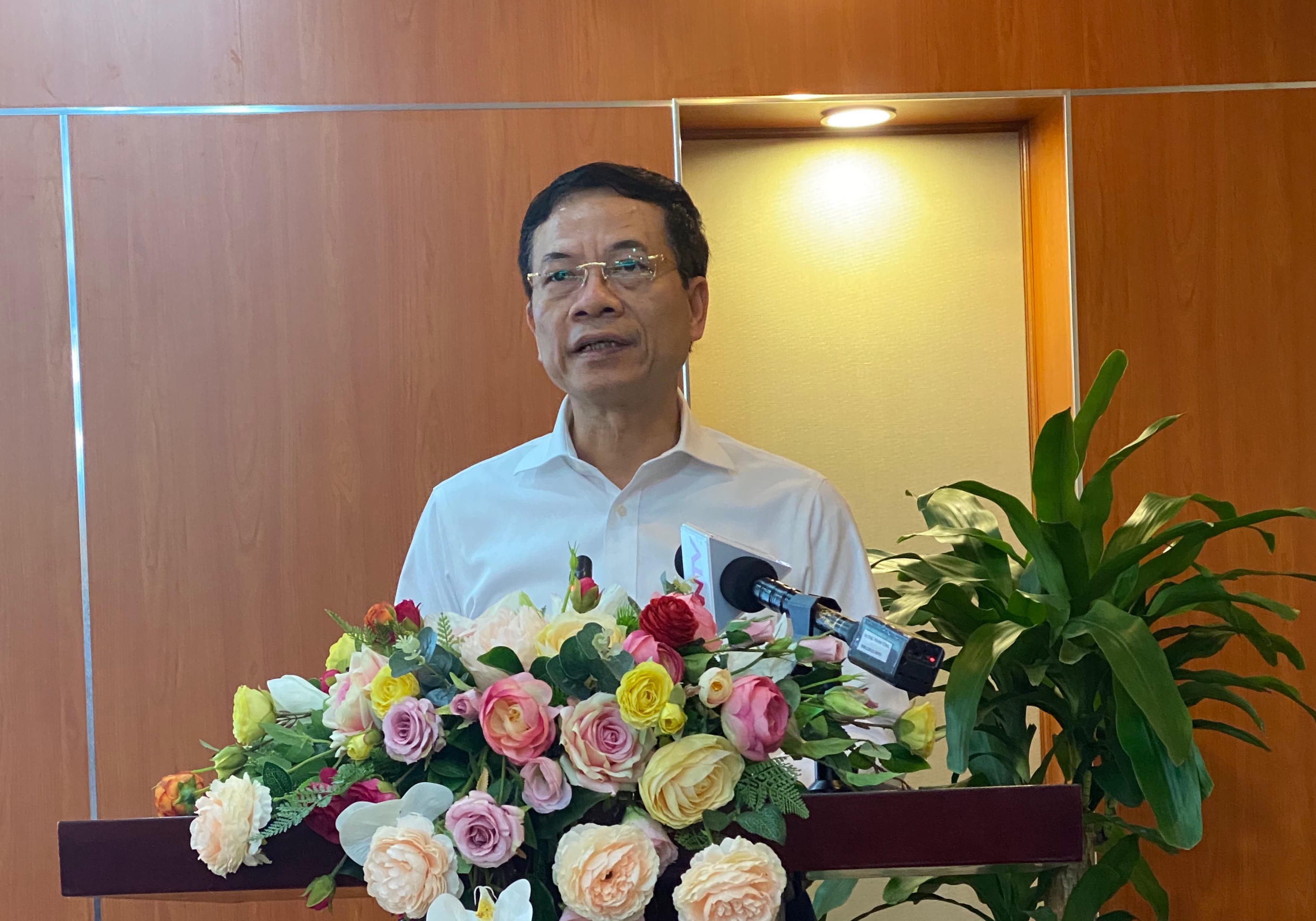| Ông Nguyễn Mạnh Hùng - Bộ trưởng Bộ Thông tin và Truyền thông- phát biểu tại buổi ra mắt hai ứng dụng. |