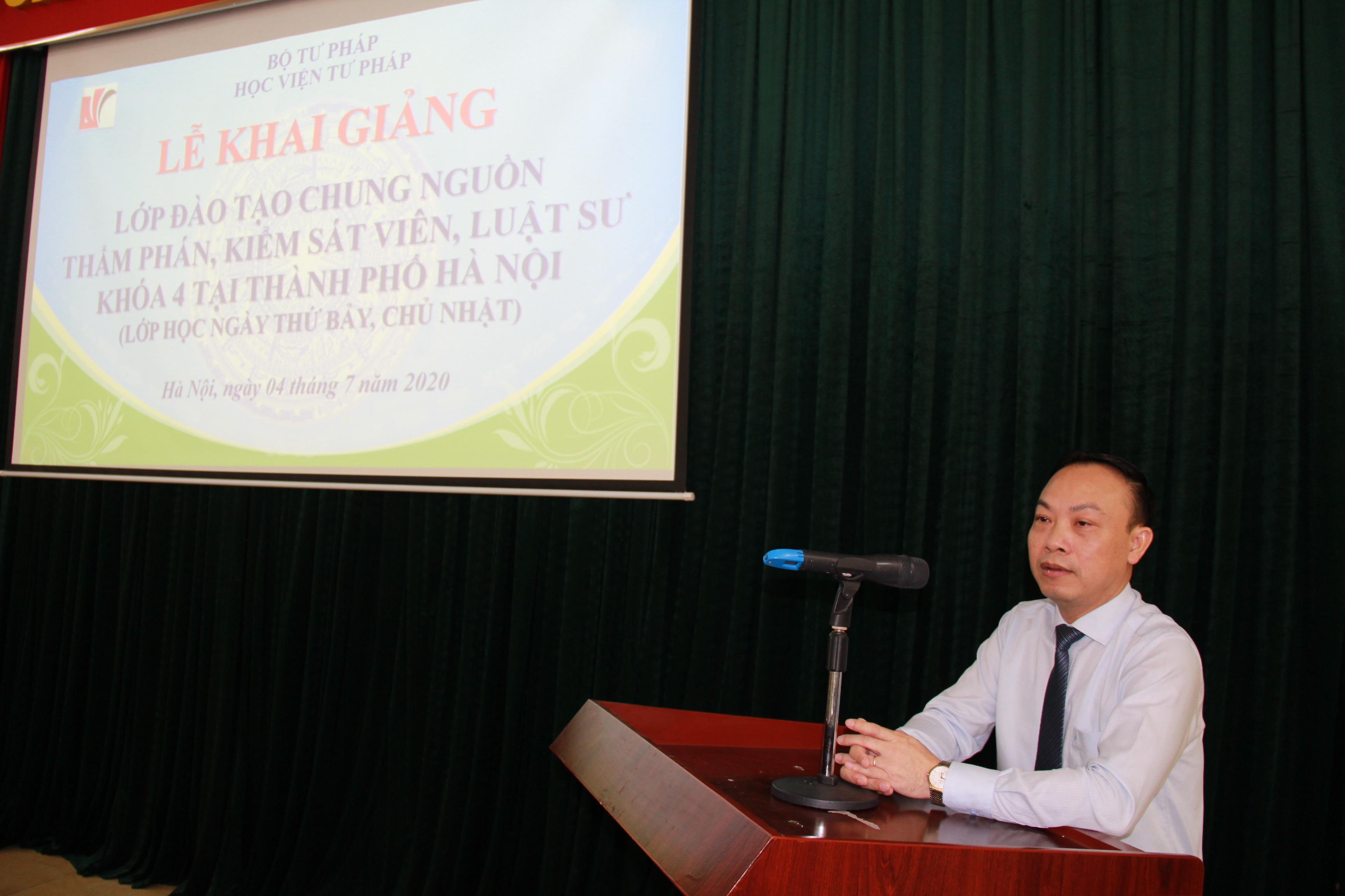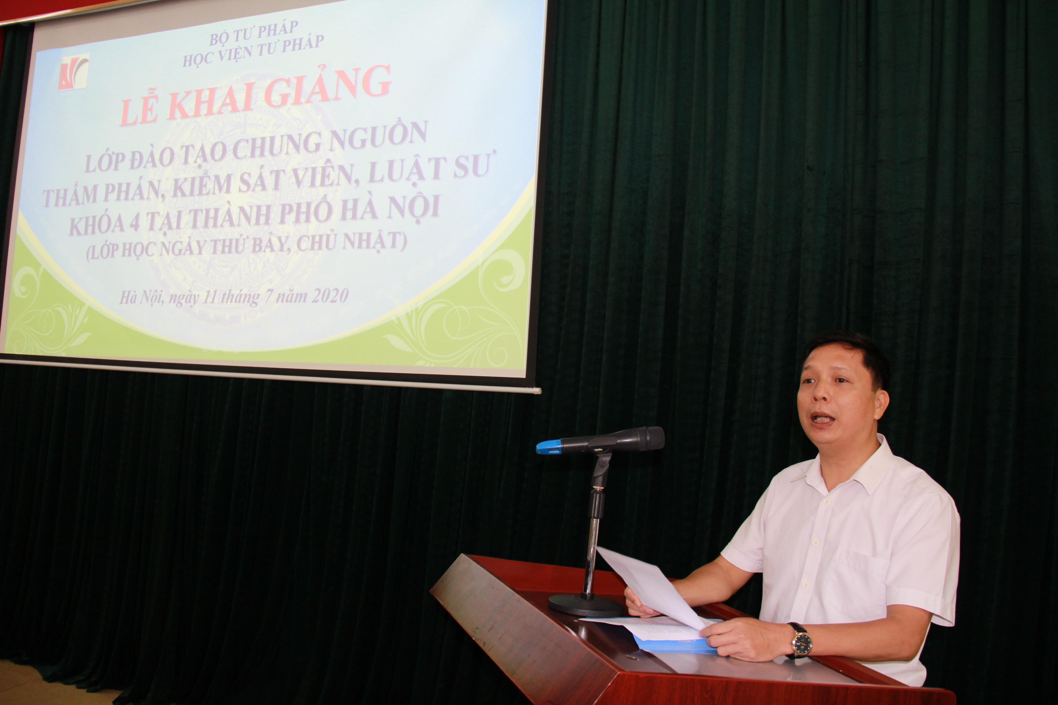 Phát biểu tại buổi lễ, Phó Giám đốc Học viện Tư pháp Nguyễn Xuân Thu khẳng định đây là chương trình nhằm đào tạo học viên có phẩm chất, kiến thức chuyên môn, kỹ năng nghề nghiệp để góp phần tạo sự đột phá trong công tác đào tạo nguồn nhân lực tư pháp có chất lượng cao phục vụ cho công cuộc xây dựng Nhà nước pháp quyền, cải cách tư pháp và hội nhập quốc tế.