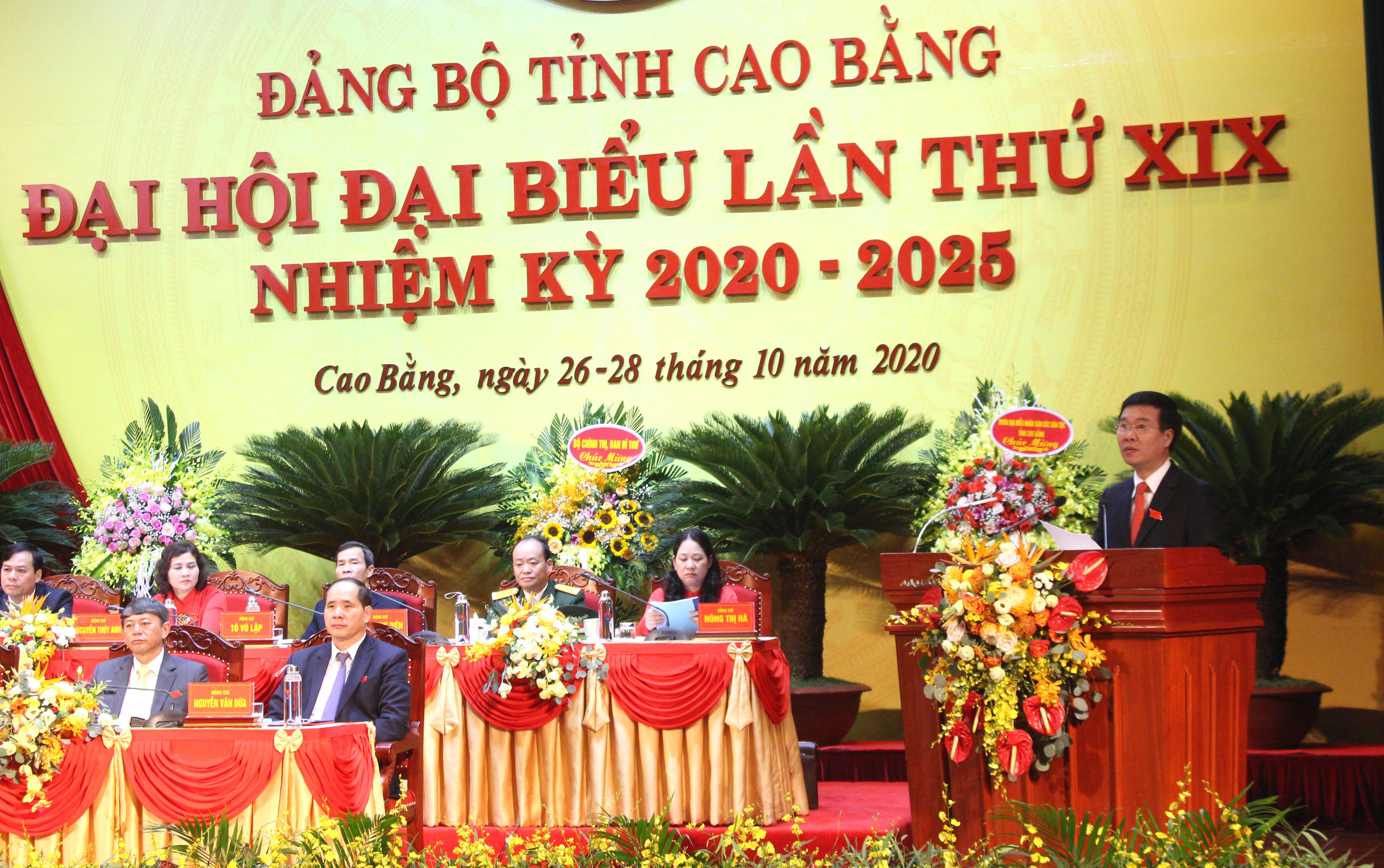 Phát biểu chỉ đạo Đại hội đồng chí Võ Văn Thưởng, Ủy viên Bộ Chính trị, Bí thư Trung ương Đảng, Trưởng Ban Tuyên giáo Trung ương ghi nhận và đánh giá cao các kết quả mà tỉnh Cao Bằng đạt được trong nhiệm kỳ qua trên tất cả các lĩnh vực.