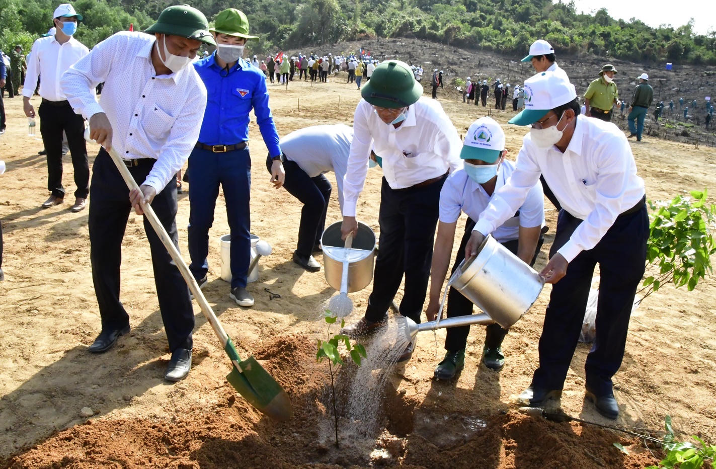 Ngay sau lễ phát động, lãnh đạo tỉnh cùng các lực lượng tham gia trồng rừng đã tiến hành trồng mới 500 cây sao đen trên diện tích 1ha rừng phòng hộ tại khoảnh 3, tiểu khu 123 thuộc địa phận thôn Ba Dùi.