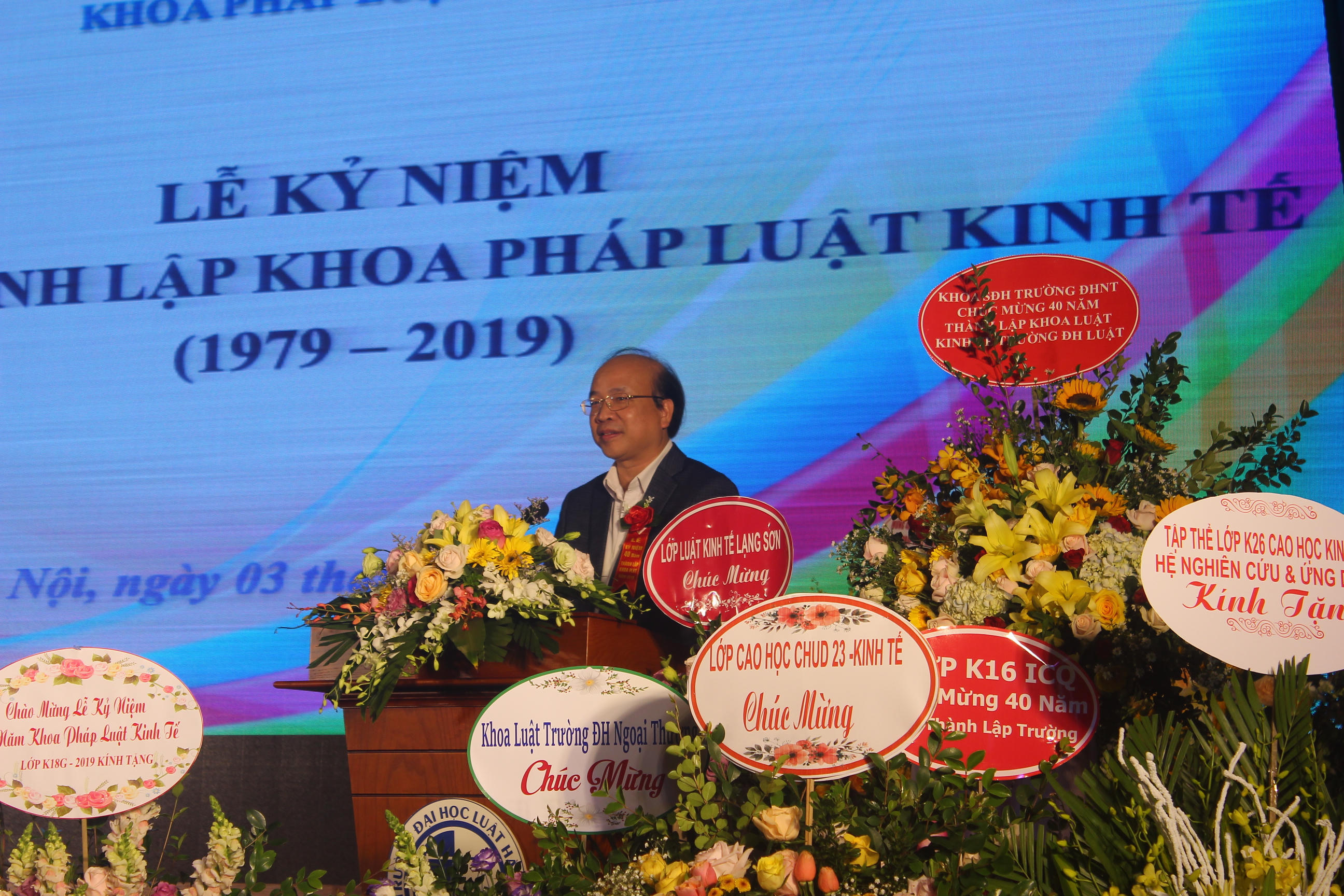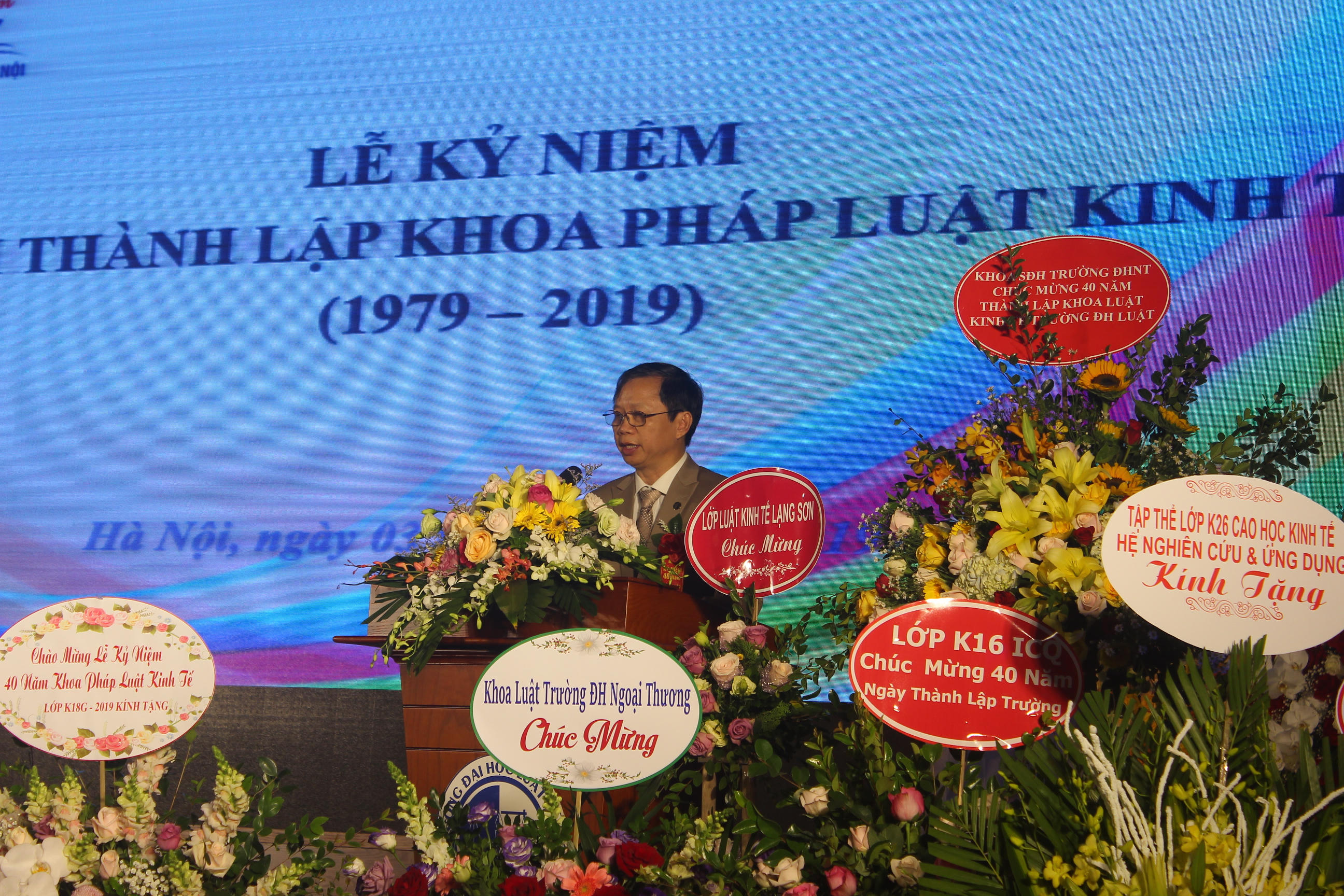 Thay mặt lãnh đạo nhà trường, Phó hiệu trưởng phụ trách Trường ĐH Luật Hà Nội Trần Quang Huy ghi nhận những thành tích mà khoa đã đạt được trong 40 năm qua, từ đó đóng góp vào sự phát triển chung của trường. Lãnh đạo Trường mong muốn rằng các giảng viên, chuyên viên của Khoa PLKT sẽ không ngừng nỗ lực, đam mê, nhiệt huyết, cống hiến trí tuệ để góp phần đưa Trường ĐH Luật Hà Nội trở thành trường trọng điểm về đào tạo cán bộ pháp luật, nhằm đáp ứng yêu cầu đào tạo đội ngũ cán bộ pháp lý chất lượng cao trong thời kỳ đẩy mạnh toàn diện công cuộc đổi mới và hội nhập quốc tế.
