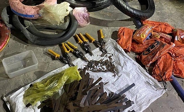 Mở rộng điều tra, cơ quan chức năng phát hiện thêm tại tiệm sửa xe của Quang có trên 500 đinh sắt hình thoi nhọn và gần 400 thanh kim loại rộng khoảng 2cm dùng để cắt thành đinh nhọn.