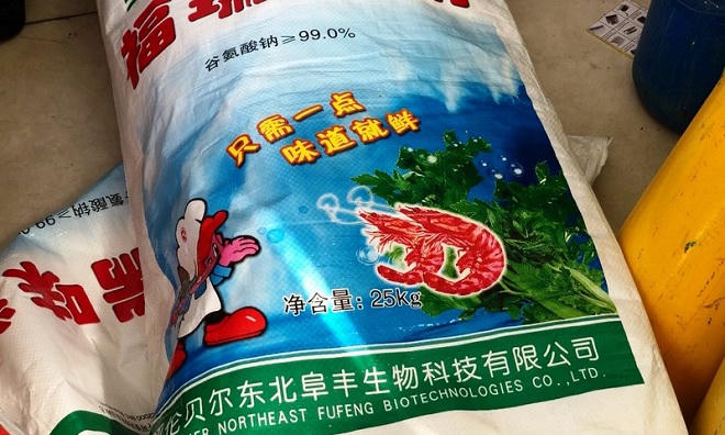 Bằng phương thức tương tự, ông Nam đã mua bột ngọt nhãn hiệu "Con tôm" của Trung Quốc giá 400 ngàn đồng/25kg và “hô biến” thành các gói bột ngọt mang nhãn hiệu A-One nhỏ.
