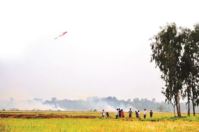 Đó là khói đốt rơm rạ trên những cánh đồng đầy gió bấc của những ngày mùa đông thơ bé. Rơm, rạ, thân cây ngô, cỏ dại được người dân vun lại thành từng đống đốt lấy tro bón lúa vụ sau. Cái mùi khói đồng lạ lắm. Thơm thơm của rơm rạ, của thân cây ngô quyện mùi ngai ngái của đất, khó có thể cắt nghĩa được rõ ràng.