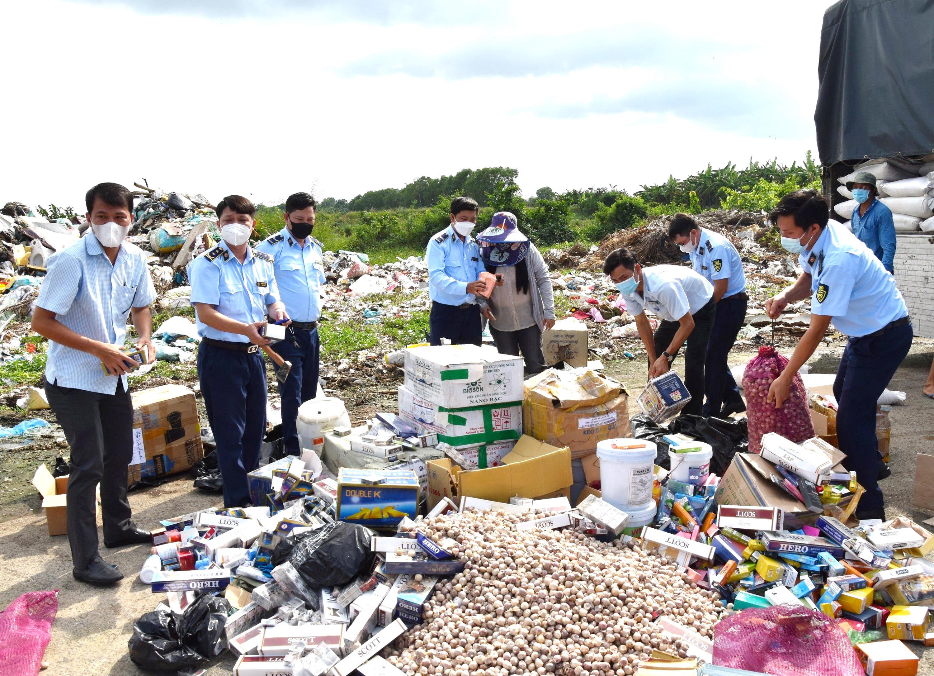 Các lực lượng liên ngành tỉnh Bạc Liêu tổ chức tiêu hủy số hàng hóa vi phạm theo quy định. |