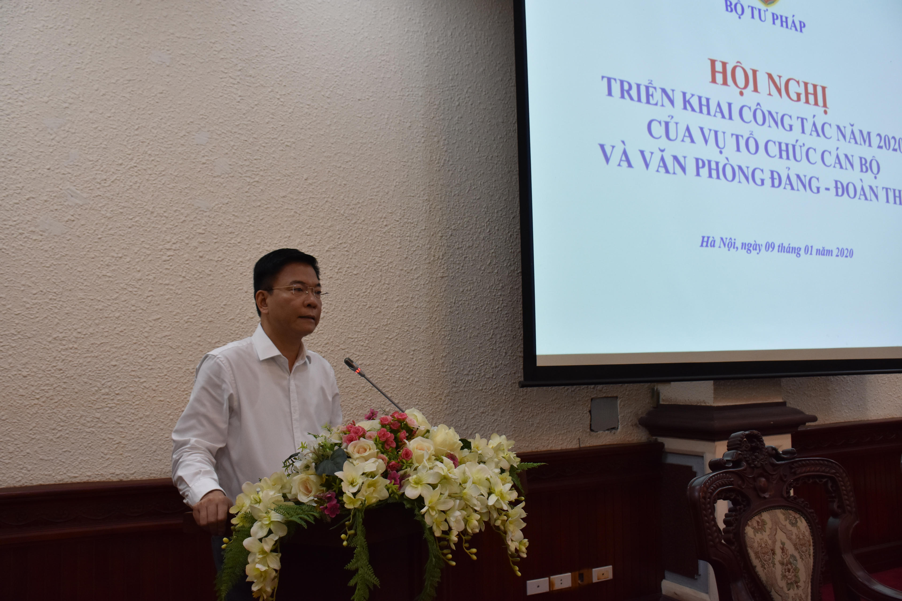Năm 2020 là năm dự báo sẽ có nhiều biến động về công tác cán bộ, do đó Bộ trưởng yêu cầu “không để xảy ra tình trạng hụt hẫng”. Trong công tác tổ chức phải tìm được những người thay thế có tầm nhìn xa, có khả năng xử lý công việc tốt; phù hợp, đặc biệt ở những đơn vị “huyết mạch” của ngành. Vụ Tổ chức cán bộ cũng cần tạo điều kiện trong công tác đào tạo, bồi dưỡng để anh em có cơ hội phát triển tốt hơn, cống hiến nhiều hơn. Trong công tác tham mưu, hai đơn vị phải tham mưu sát; có ý kiến để lãnh đạo Bộ khi về cơ sở có thêm tiếng nói với cấp ủy, chính quyền địa phương để tiếp tục khẳng định vai trò, vị trí của cơ quan Tư pháp, THADS. Bộ trưởng cũng yêu cầu các đơn vị thuộc Bộ tiếp tục phối hợp để hai đơn vị hoàn thành tốt nhiệm vụ.
