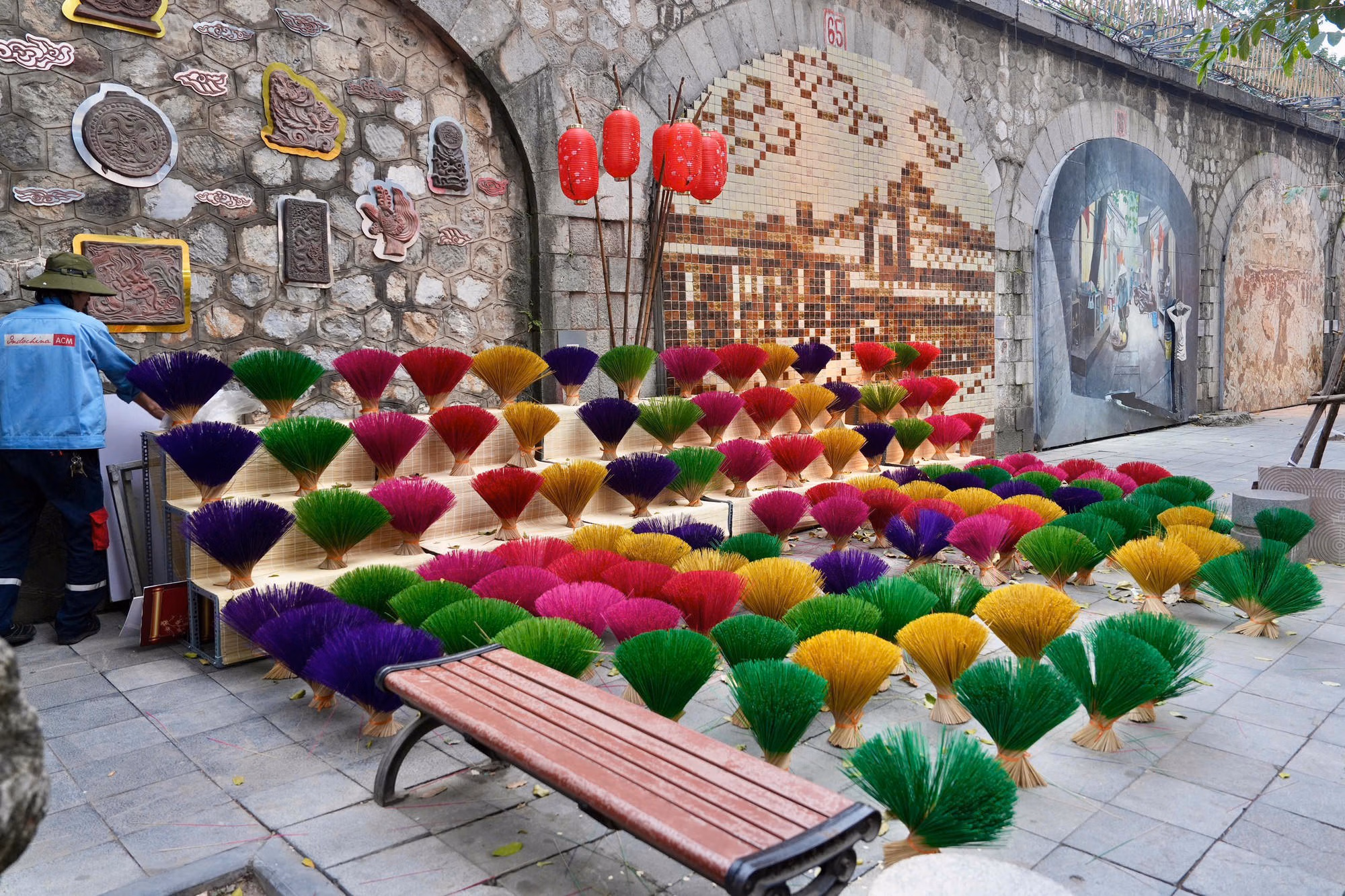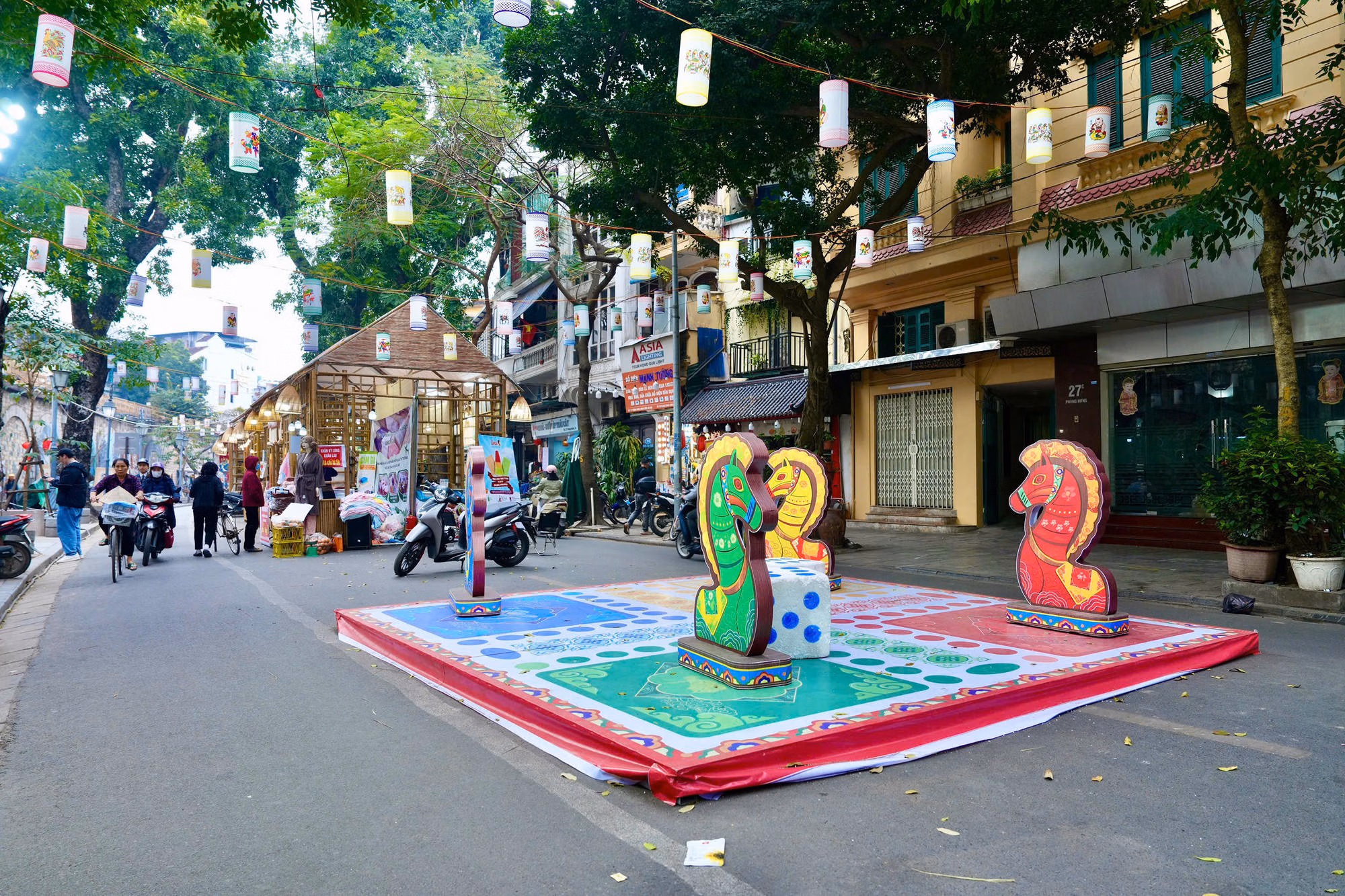 Những ngày qua, phố bích họa Phùng Hưng trở thành điểm nhấn thu hút đông đảo người tham quan. Khu vực này được trang trí rực rỡ với nhiều cụm tiểu cảnh, mô hình nghệ thuật độc đáo như bàn cờ cá ngựa khổng lồ, các gian hàng được thiết kế từ chất liệu tre, nứa thân thiện với môi trường. Tại đây, Ban Tổ chức bố trí 30 gian trưng bày giới thiệu các sản phẩm thủ công mỹ nghệ, làng nghề truyền thống và tranh dân gian.