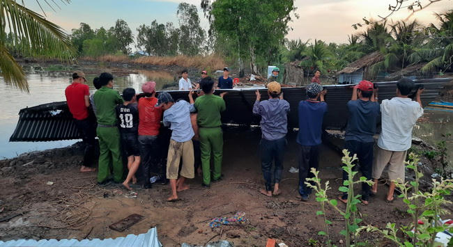 (PLVN) - Cho đến chiều nay lực lượng Công an, quân sự và chính quyền xã Vân Khánh Tây (huyện An Minh, tỉnh Kiên Giang) vẫn đang giúp dân khắc phục nhà ở do thiên tai gây ra vào chiều qua 24/4.