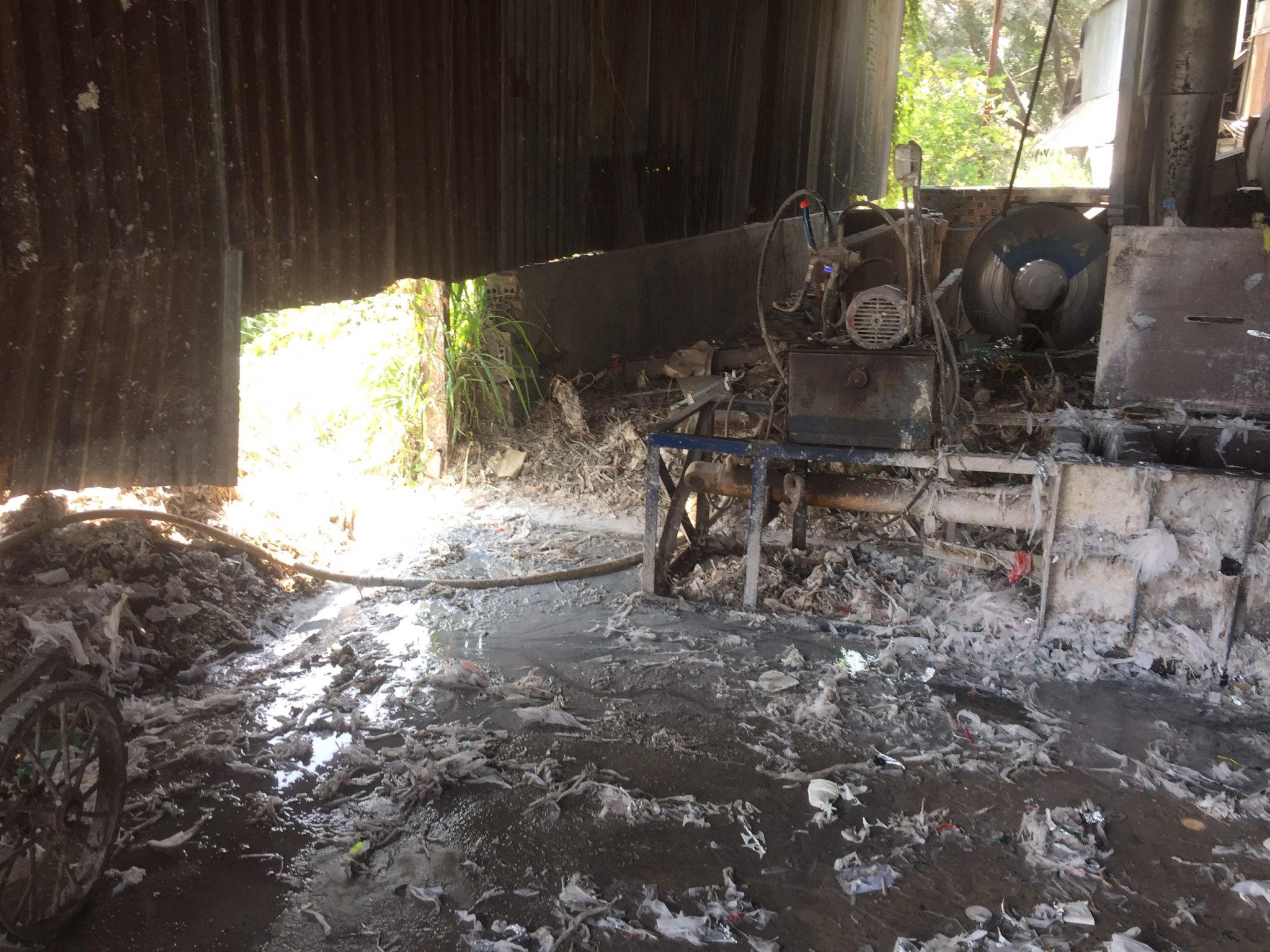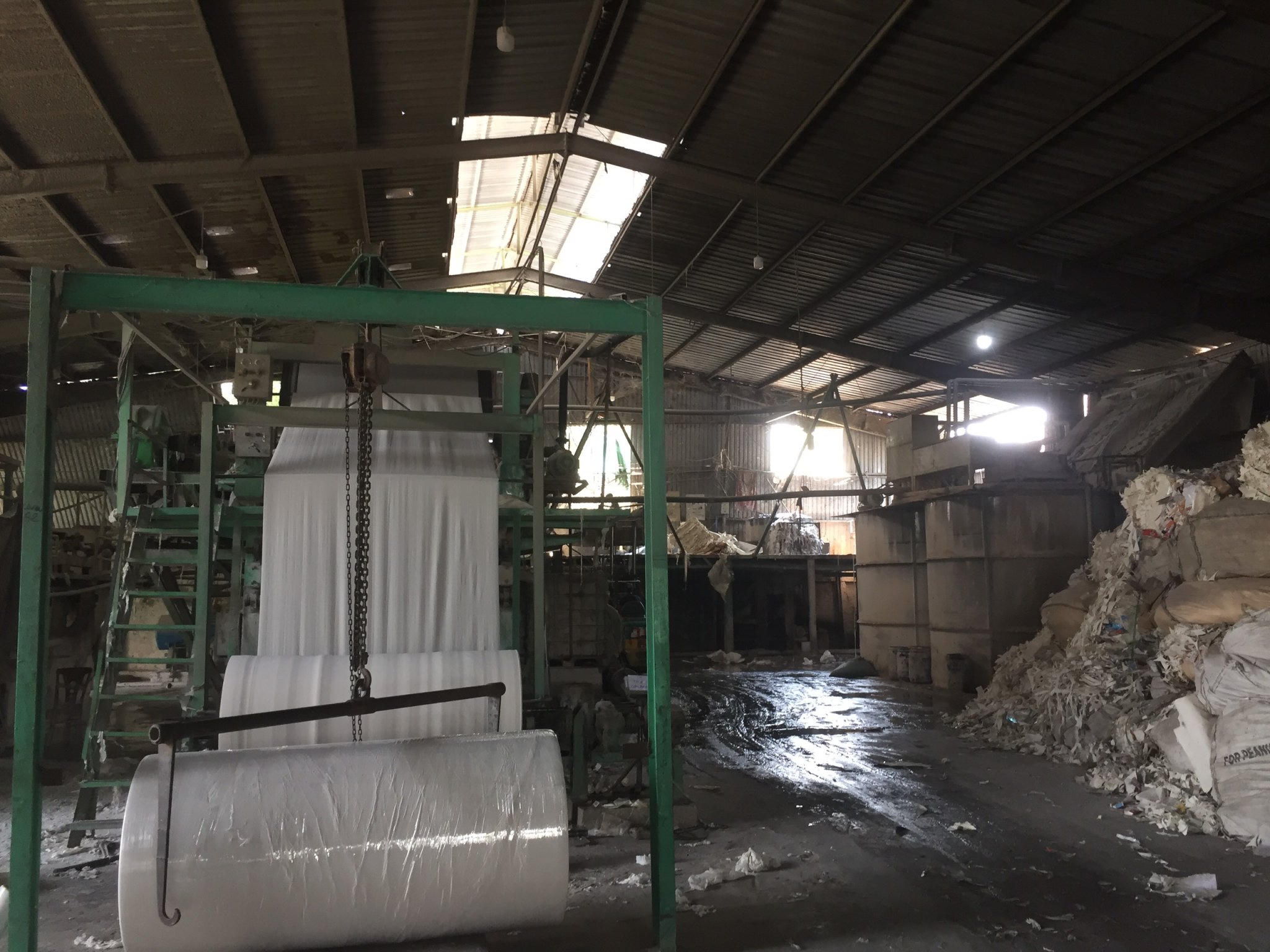Sàn bám đầy chất bẩn, sợi giấy quyện với hoá chất vương vãi, rải rác khắp nơi.