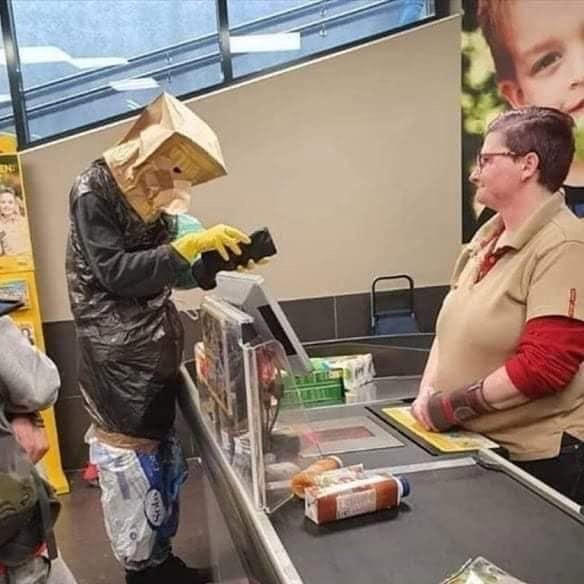 | Người mua sắm này không đùa khi nói đến việc giữ an toàn sức khỏe. |
