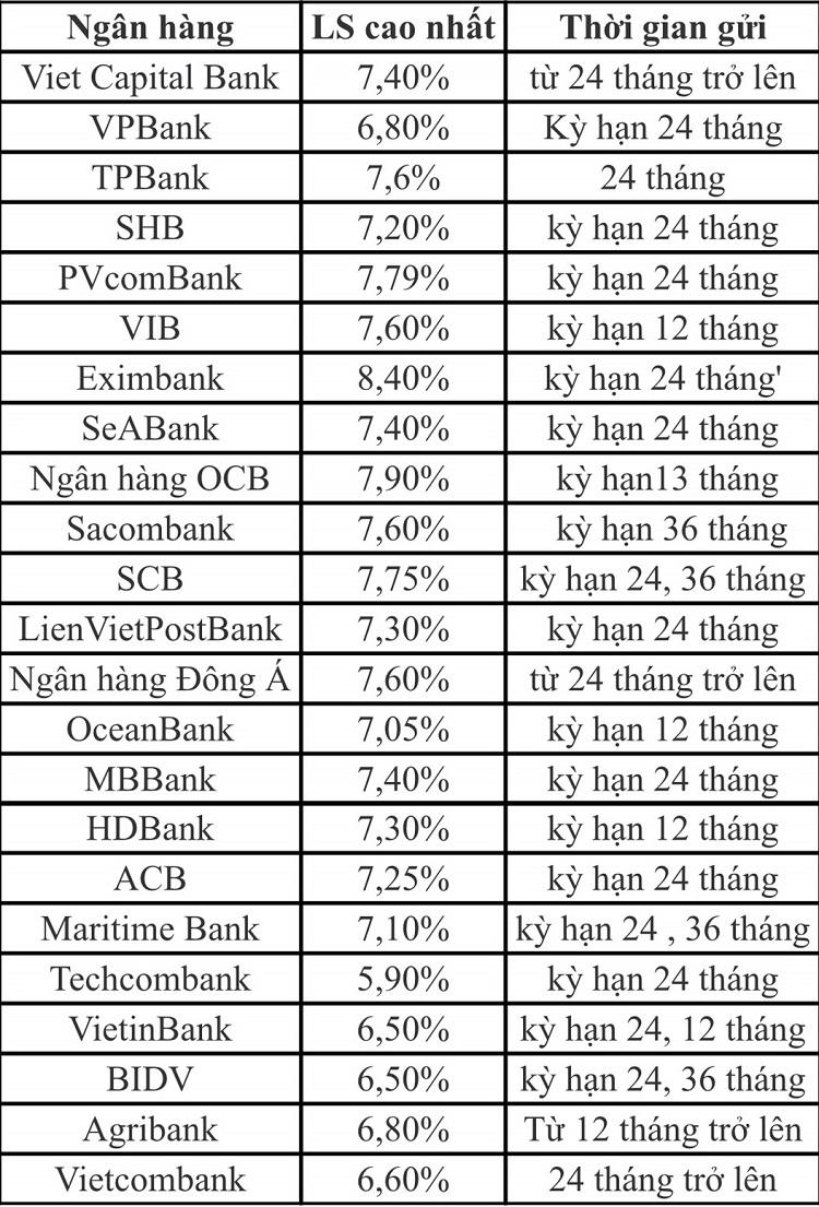 Tương tự, VPBank giảm 0,2-0,4%; ACB giảm 0,1-0,4%; hay VIB, NamABank, TPBank, Eximbank... đều giảm lãi tiền gửi tại nhiều kỳ hạn 0,2-0,5%/năm.