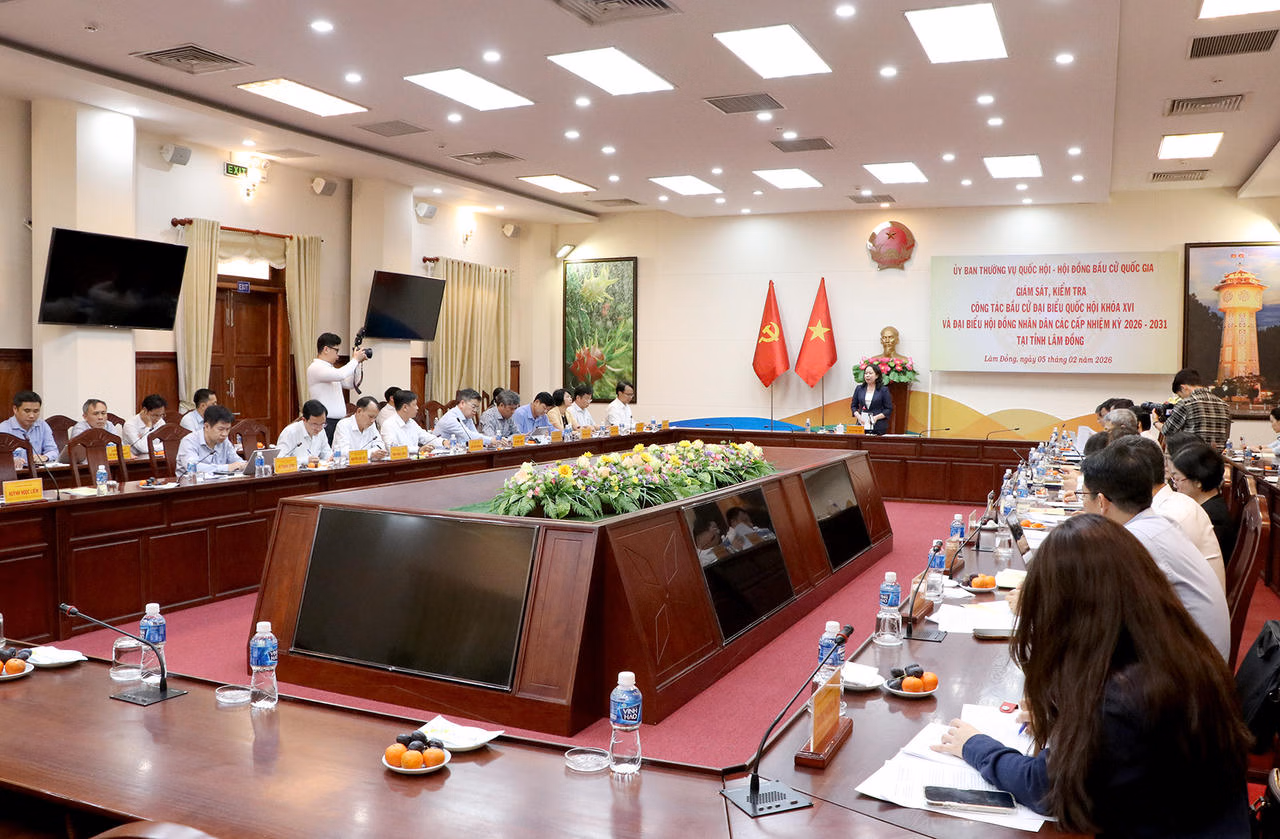 Cụ thể, Đoàn kiểm tra của Hội đồng bầu cử quốc gia do Phó Chủ tịch nước Võ Thị Ánh Xuân - Bí thư Trung ương Đảng, Phó Chủ tịch Hội đồng bầu cử quốc gia làm Trưởng đoàn đã làm việc với Ủy ban Bầu cử tỉnh Lâm Đồng về công tác chuẩn bị bầu cử đại biểu Quốc hội khóa XVI và đại biểu HĐND các cấp, nhiệm kỳ 2026 - 2031 trên địa bàn tỉnh.