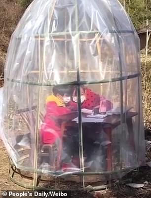 (PLVN) - Người mẹ Trung Quốc chế tạo một chiếc lều chống virus corona bằng tre trúc và một tấm nhựa để cô gái có thể học ngoài trời mà không sợ bị nhiễm bệnh.