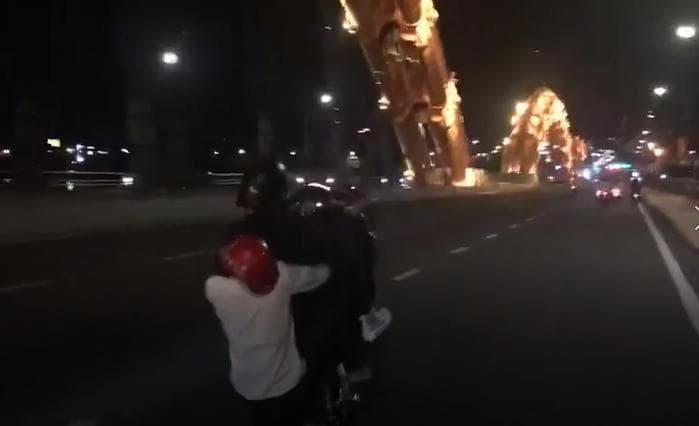 2 clip dài 37 giây ghi lại hình ảnh hai thanh niên chạy xe máy với tốc độ cao, bốc đầu xe chạy một bánh. Góc quay clip cho thấy, nam thanh niên mặc áo đen chở theo một người chạy trên đường Điện Biên Phủ với tốc độ cao, bốc đầu xe một đoạn dài hàng trăm mét, người ngồi sau còn có hành động thả tay để tạo dáng.