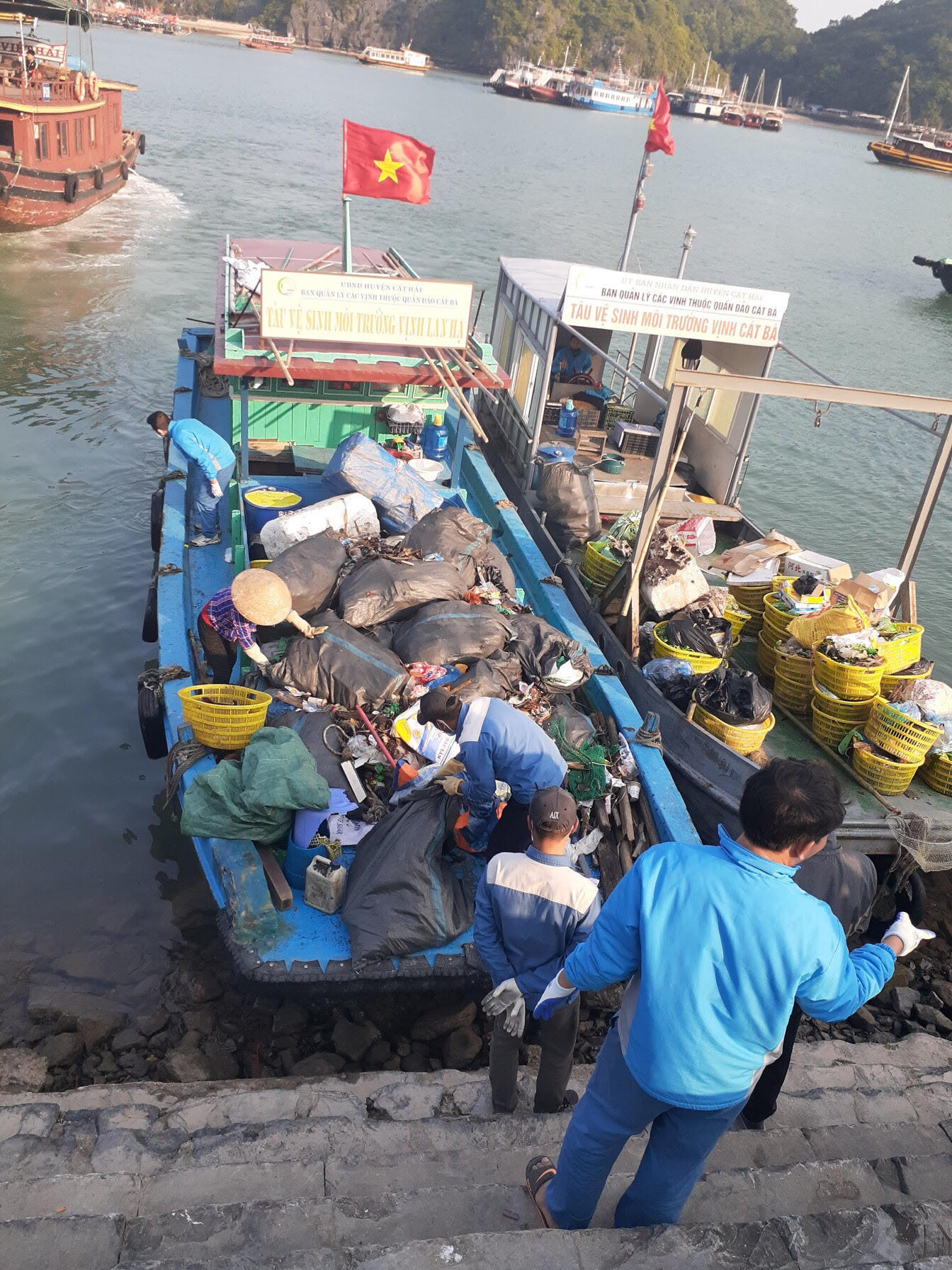 Đối với rác thải phát sinh trên Vịnh, tính đến thời điểm hiện tại, các phương tiện đăng ký hoạt động chở khách thăm quan, lưu trú ngủ đêm bắt buộc phải thực hiện việc ký hợp đồng thu gom, vận chuyển rác với Ban quản lý Vịnh Cát Bà.