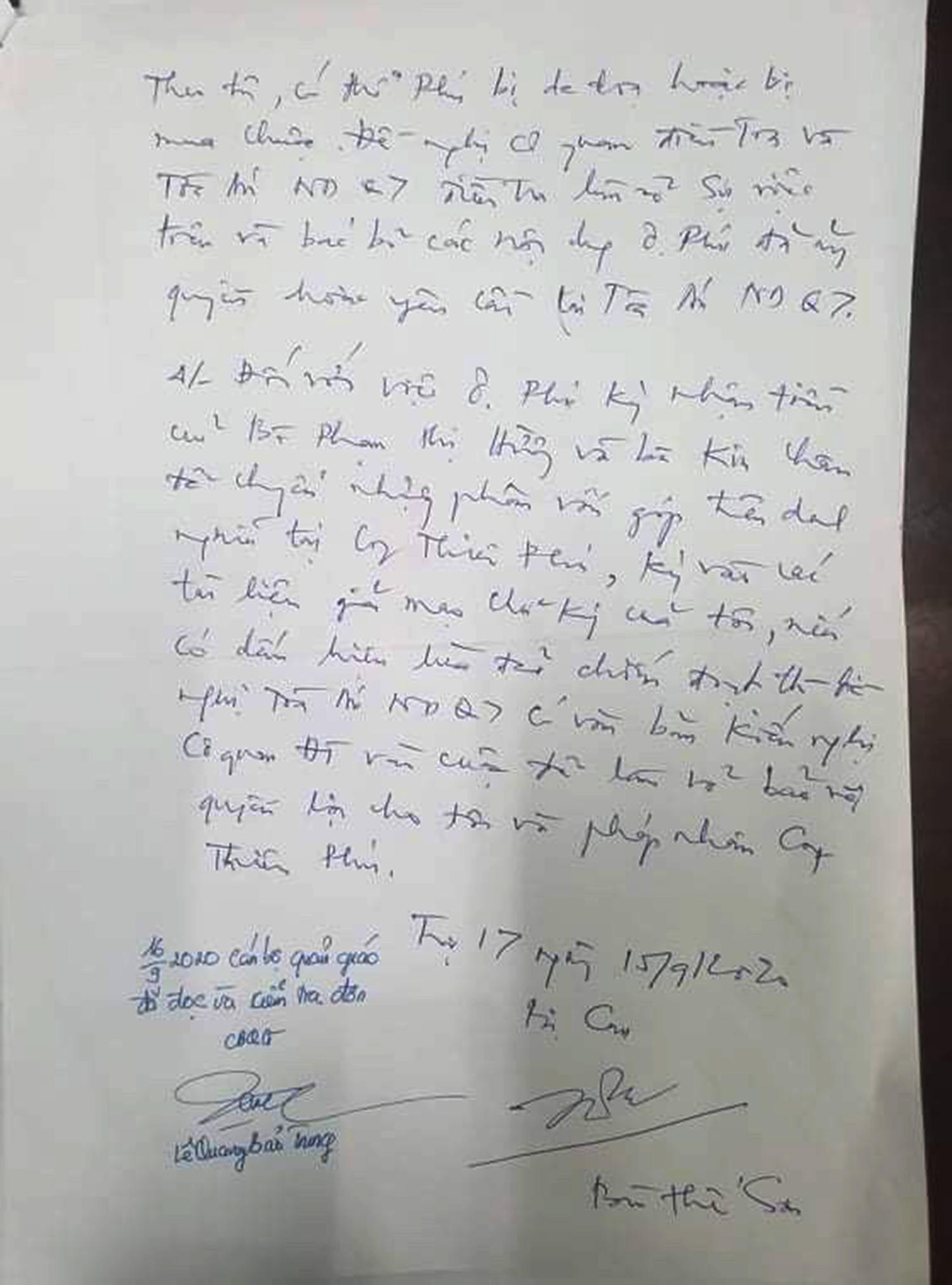 Ngày 14/9/2020, Bộ Công an có văn bản gửi TAND quận 7 cho biết tại hồ sơ thay đổi đăng ký kinh doanh của Thiên Phú, các chữ ký, chữ viết tên “Bùi Thế Sơn” là giả.