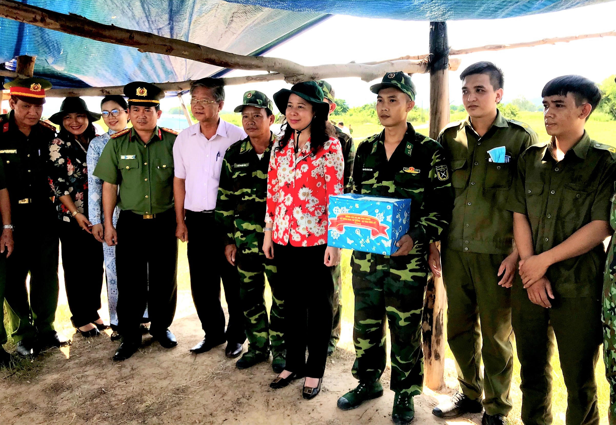 Dịp này, Bí thư Tỉnh ủy - Võ Thị Ánh Xuân; Chủ tịch UBND tỉnh Nguyễn Thanh Bình; Phó Bí thư Thường trực Tỉnh ủy Võ Anh Kiệt thay mặt Tỉnh uỷ, UBND tỉnh tặng 20 phần quà, kèm theo tiền mặt cho cán bộ, chiến sĩ các Tổ, chốt phòng, chống dịch bệnh Covid-19 thuộc các Đồn Biên phòng cửa khẩu quốc tế Tịnh Biên, cửa khẩu quốc tế Vĩnh Xương, Lạc Quới và Nhơn Hội nhằm động viên các đơn vị phấn đấu hoàn thành tốt nhiệm vụ. Tổng trị giá quà tặng và tiền mặt ước tính hoảng160 triệu đồng./.