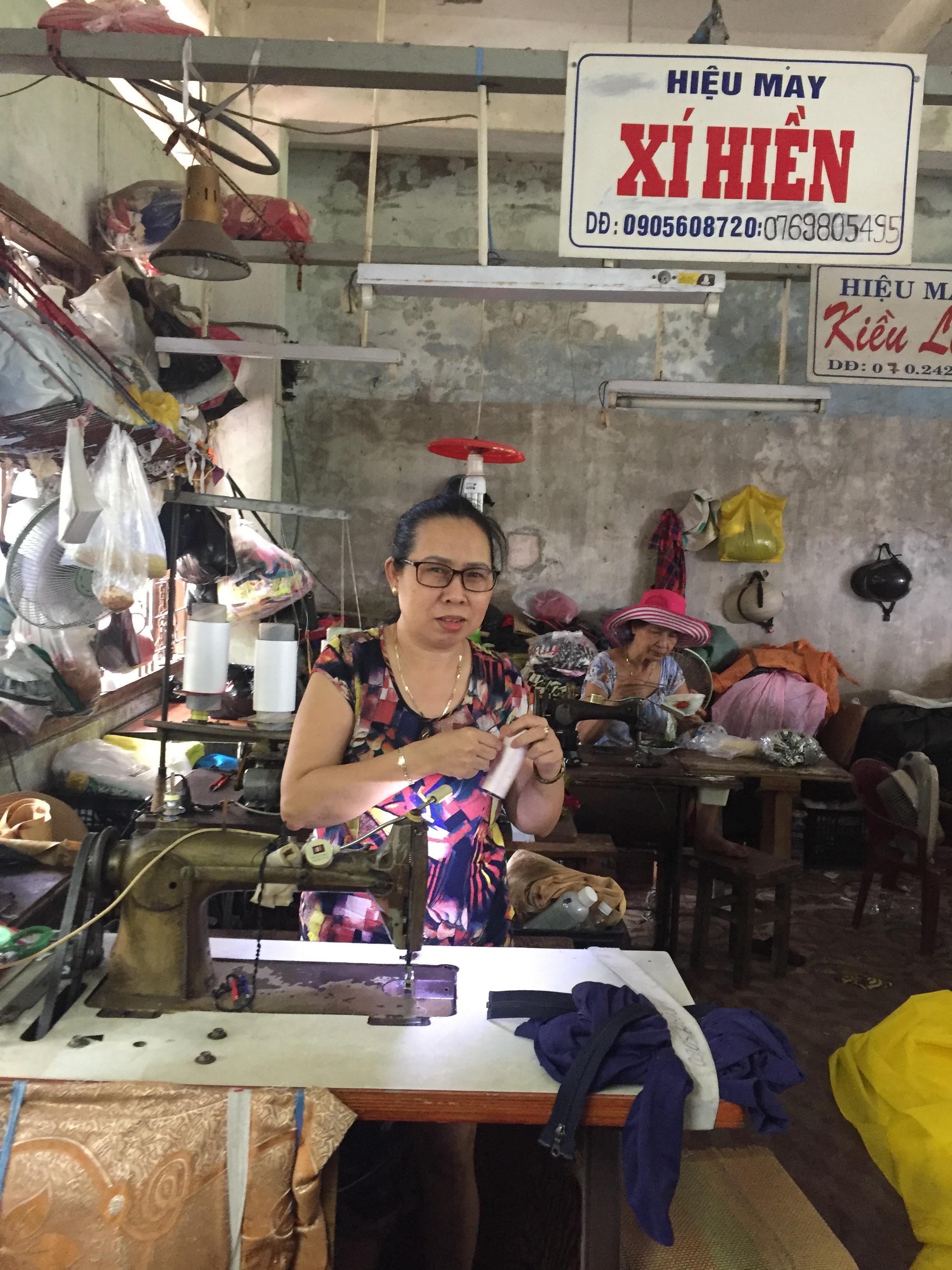 Những người thợ ngồi nơi đây, xưa kêu đều là những tay thợ lành nghề chuyên may váy, đầm, áo dài, đồ bộ đủ cả. Giờ thì họ xâu kim cũng chậm nên chuyên trị sửa đồ cũ, may cờ phướn, màn, rèm… “Ngày trước, hàng hóa nhiều lắm. Ngồi đây cả ngày may không hết, tui về nhà còn thắp đèn may đêm. May một lèo đến 12 giờ đêm mới ngủ, nhưng 1 giờ sáng đã trở dậy làm cho kịp việc. Mẹ tui sợ con ốm, còn đem cả đèn dầu đi giấu”. Bà Xí kể lại thời hoàn kim trong nghề bằng ánh mắt lấp lánh.