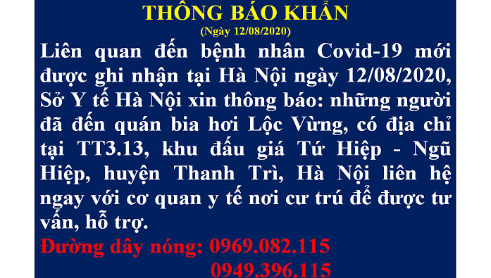 Ngày 10/8/2020, Bệnh viện Thanh Nhàn gửi mẫu xét nghiệm lên CDC Hà Nội, kết quả âm tính lần 1.