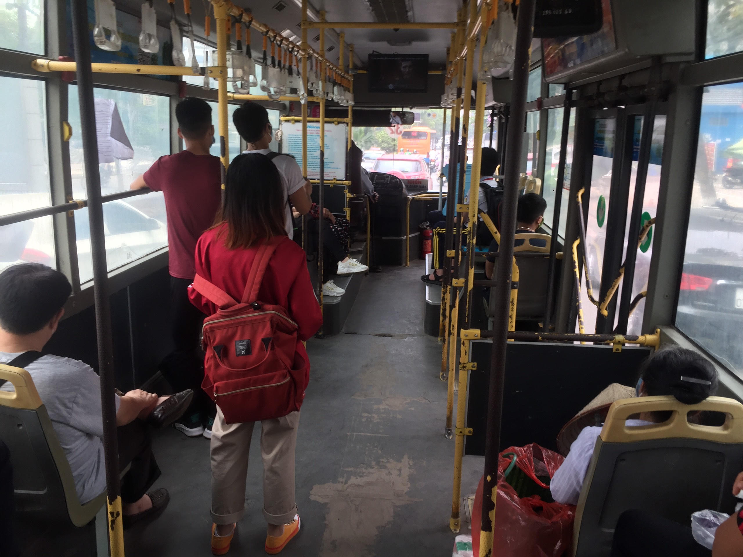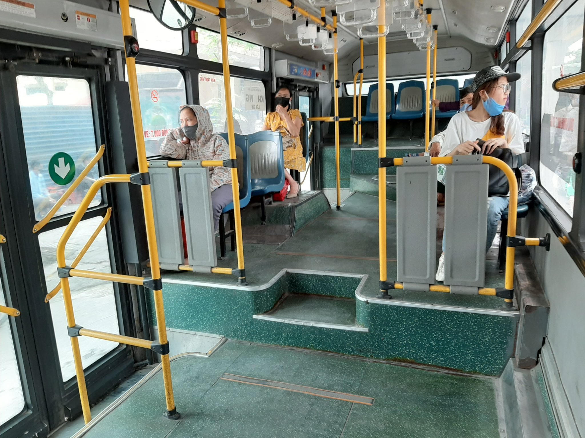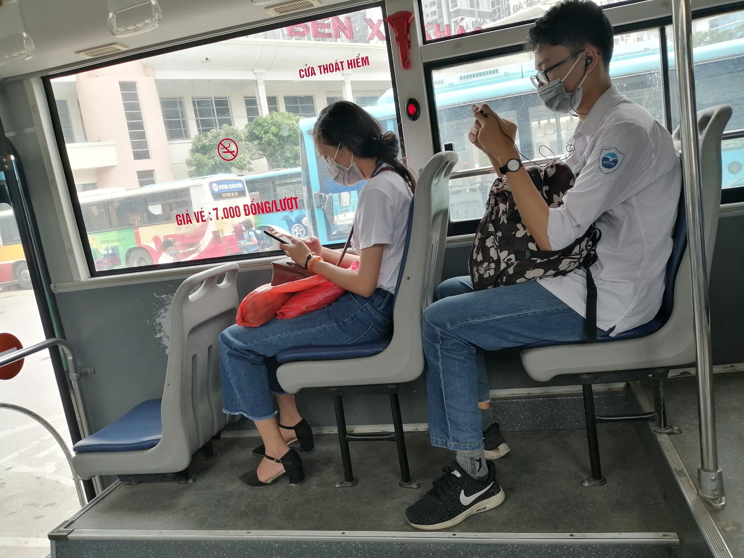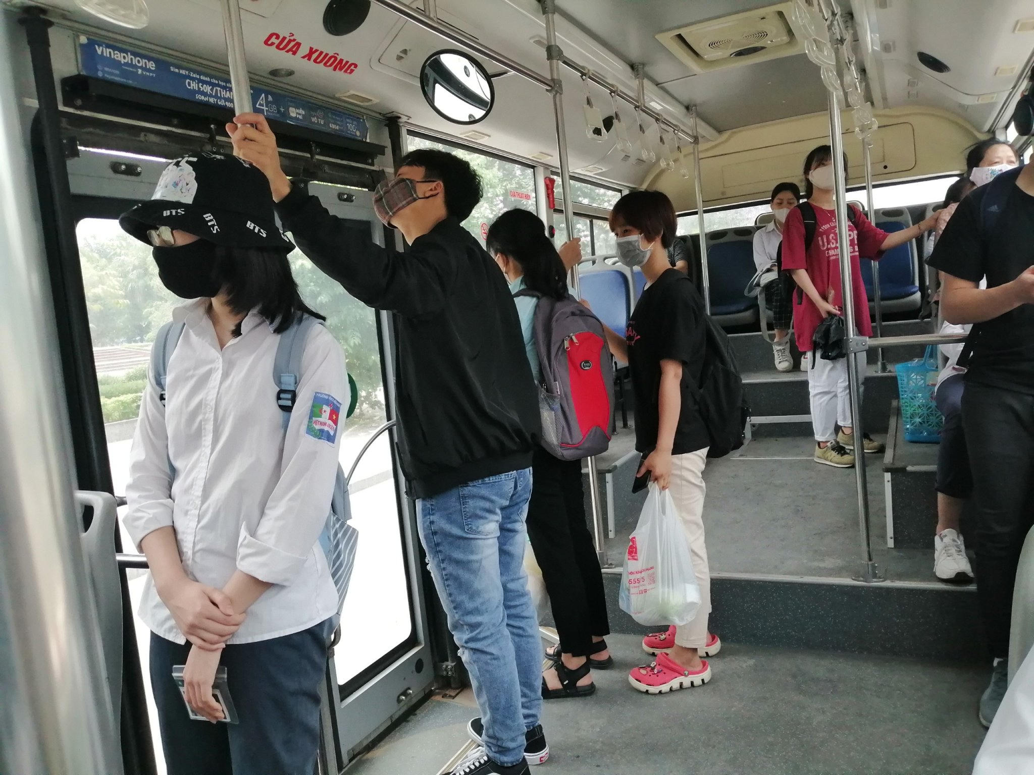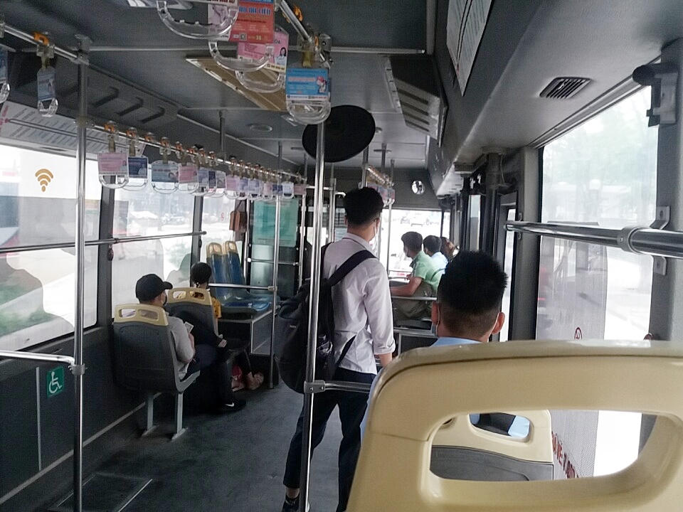 Theo ghi nhận, vào thời điểm tan tầm trưa ngày 7/5, lượng khách trên phương tiện công cộng như xe buýt vẫn ở mức độ thấp hơn so với thời điểm trước dịch. Trung bình số người trên xe giao động từ 10-20 người. Tài xế, phụ xe và các hành khách đều đeo khẩu trang và tuân thủ quy định trên xe.